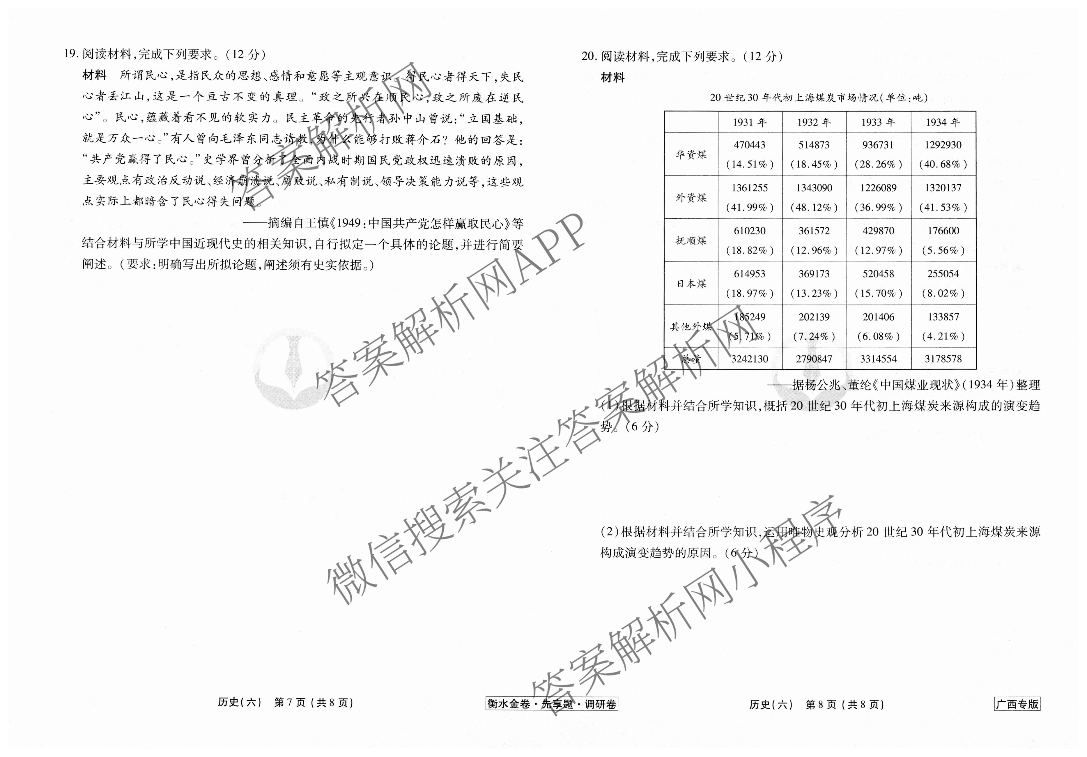 - (高三)[衡水金卷先享题]·调研卷 2024年普通高中学业水平选择性考试模拟试题(六)6历史(广西专版)答案