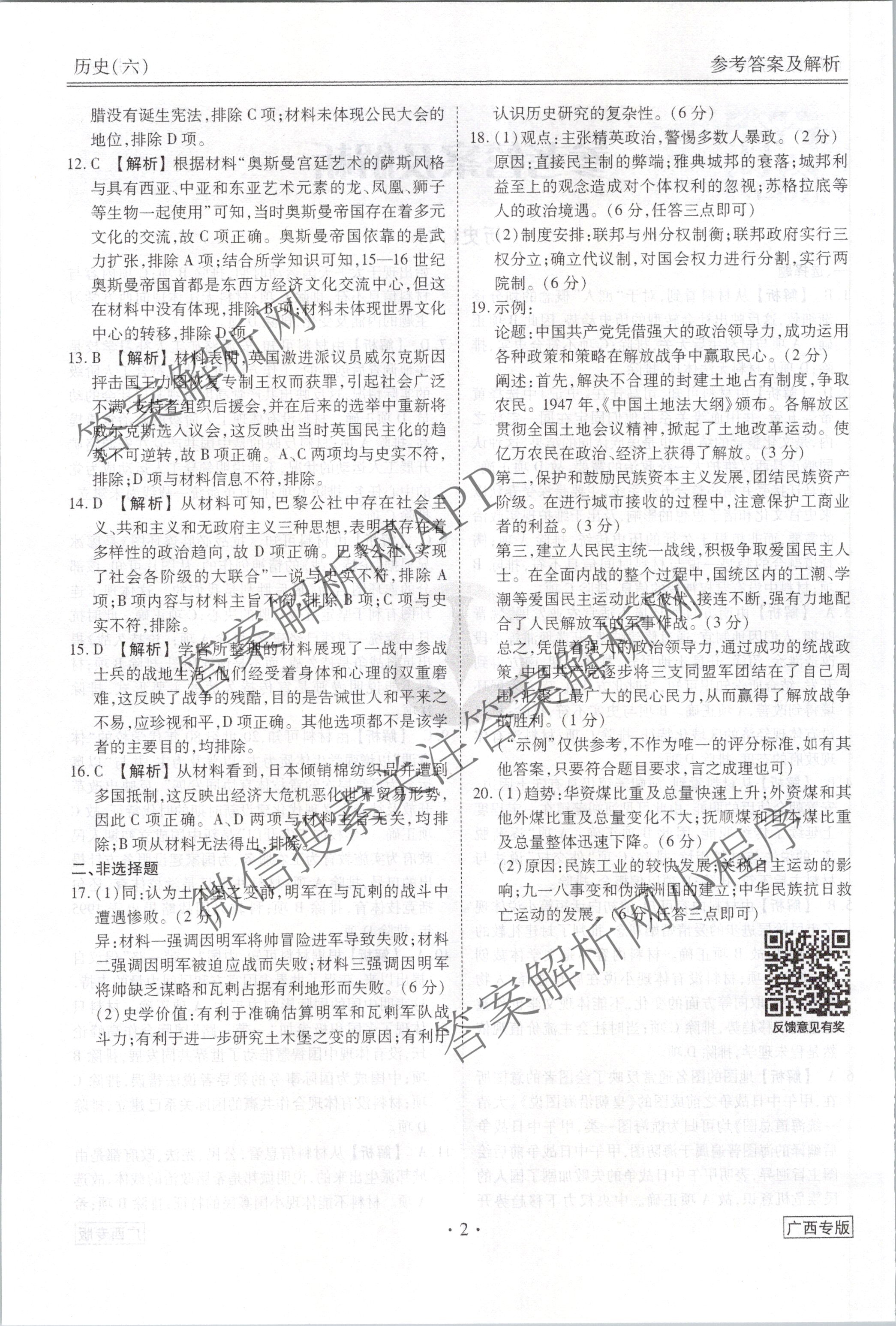 - (高三)[衡水金卷先享题]·调研卷 2024年普通高中学业水平选择性考试模拟试题(六)6历史(广西专版)答案