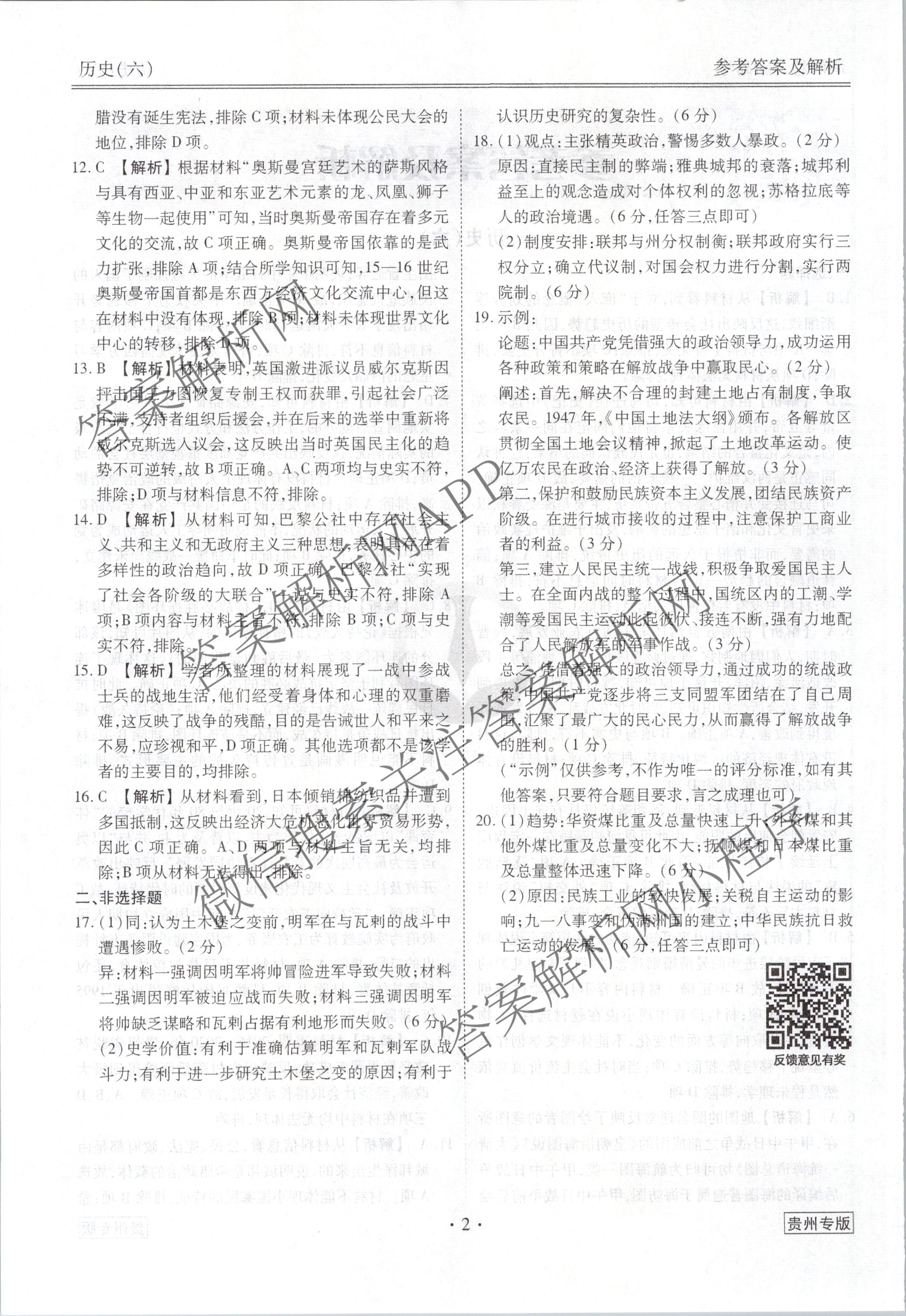 (高三)[衡水金卷先享题]·调研卷 2024年普通高中学业水平选择性考试模拟试题(六)6历史(贵州专版)答案
