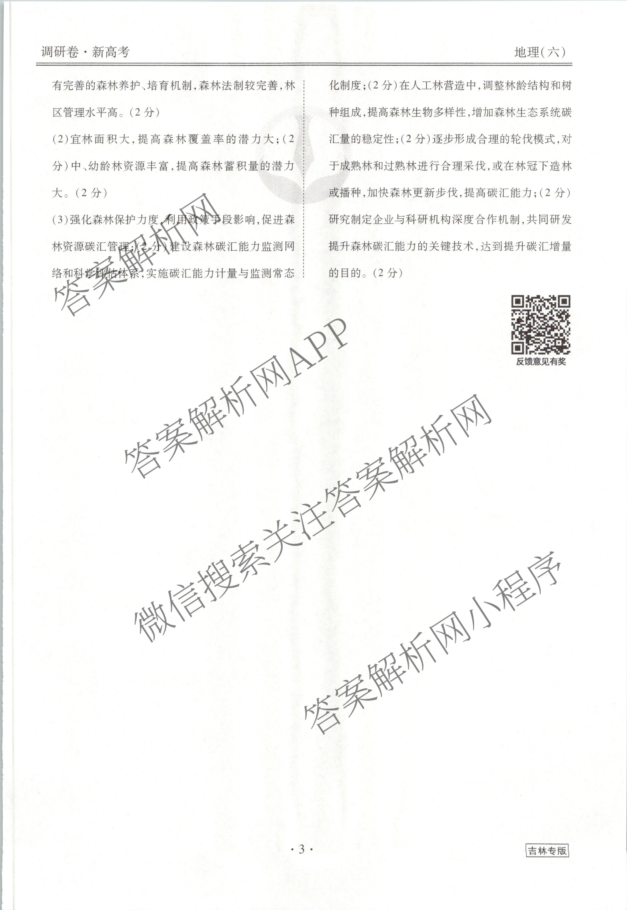 [高三](衡水金卷先享题)·调研卷 2024年普通高中学业水平选择性考试模拟试题(六)6地理(吉林专版)答案