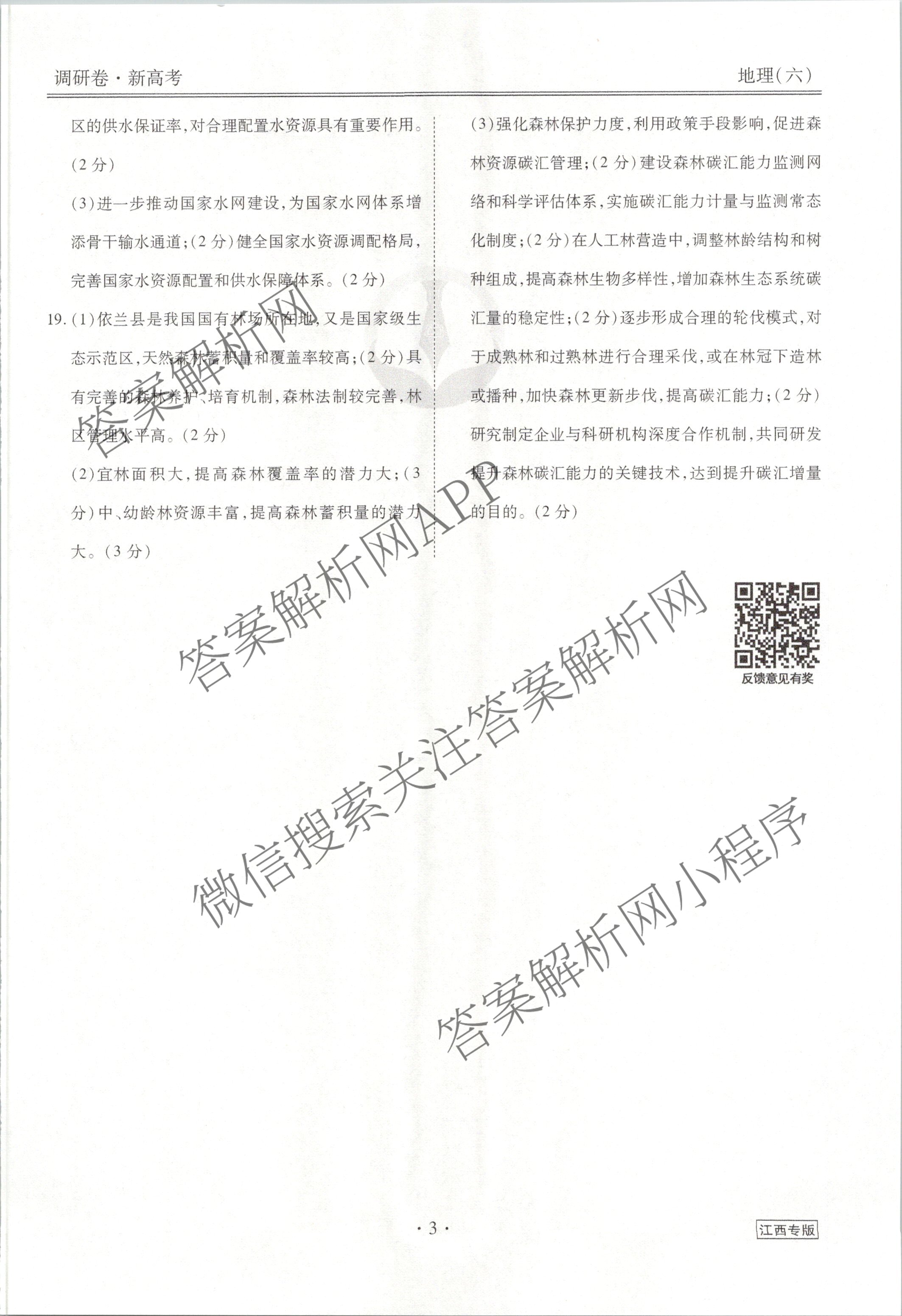 (衡水金卷先享题)调研卷 2024年普通高中学业水平选择性考试模拟试题(六)6地理(江西专版)答案