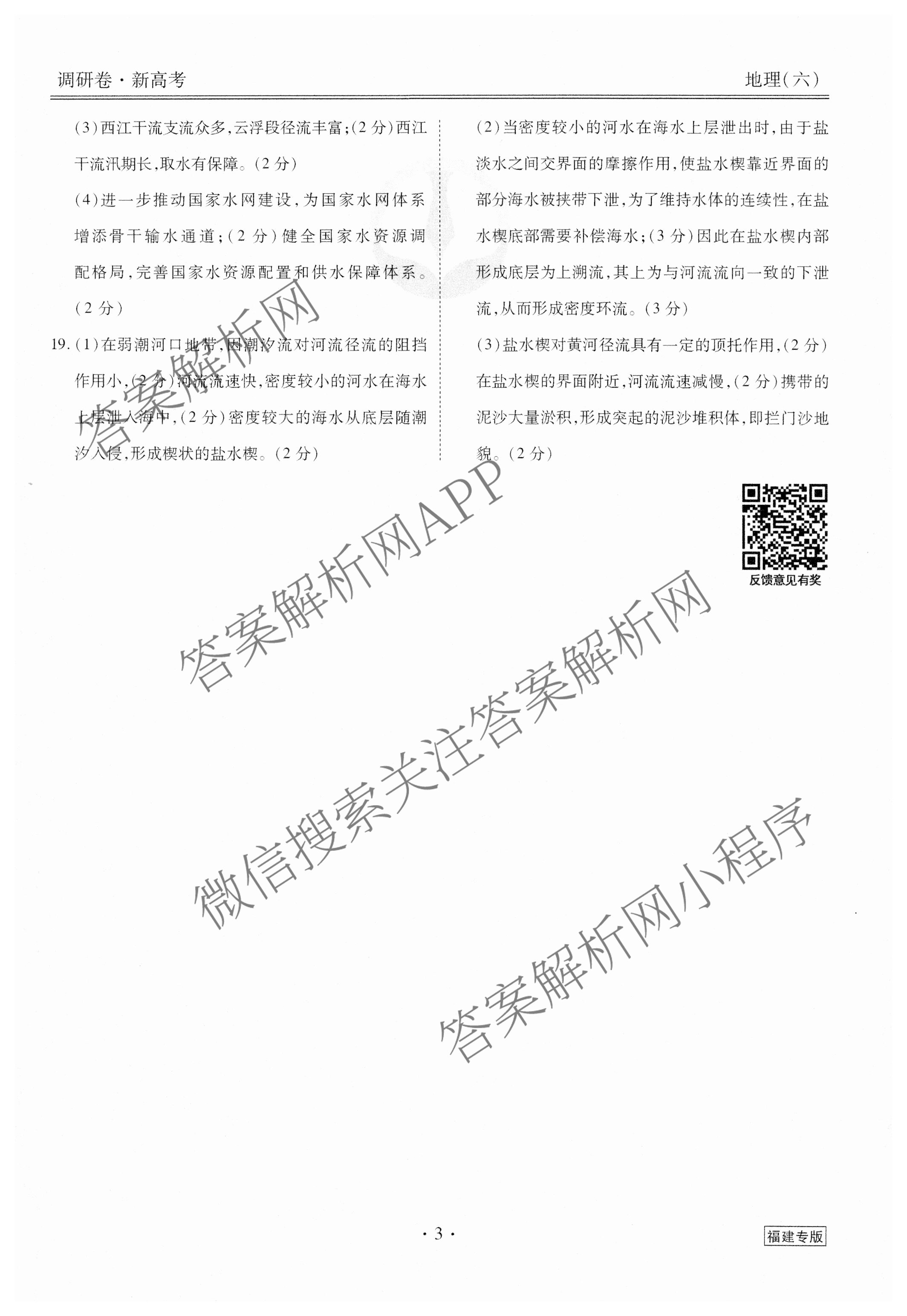 (高三)(衡水金卷先享题)·调研卷 2024年普通高中学业水平选择性考试模拟试题(六)6地理(福建专版)答案