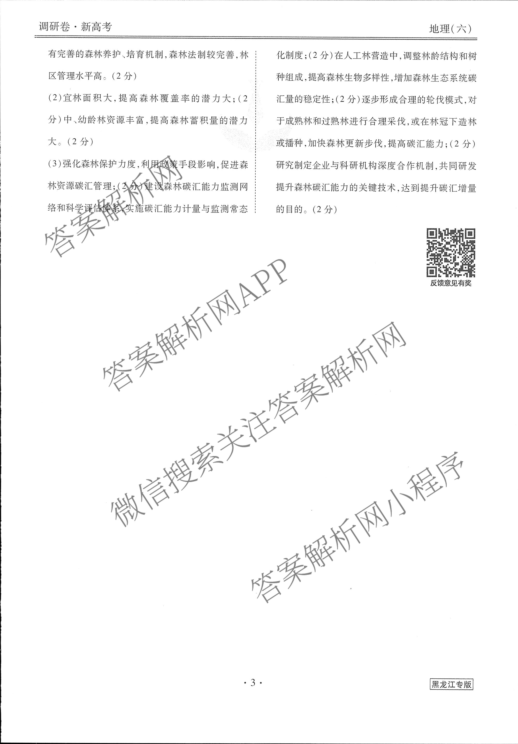 衡水金卷先享题调研卷 2024年普通高中学业水平选择性考试模拟试题(六)6地理(黑龙江专版)答案