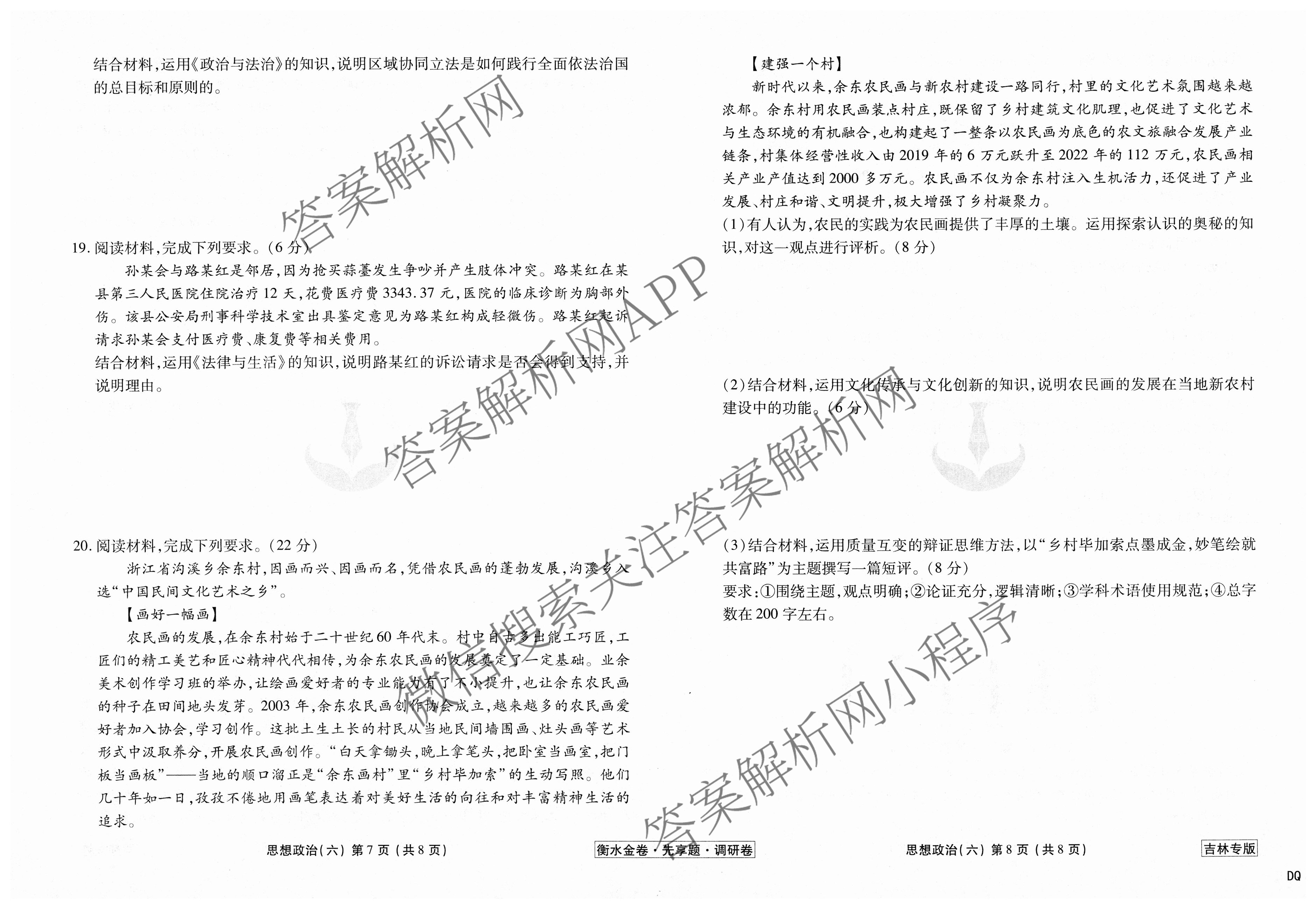 衡水金卷先享题·调研卷 2024年普通高中学业水平选择性考试模拟试题(六)6政治(吉林专版)试题,目前衡水金卷先享题答案网已经汇总了衡水金卷先享题·调研卷 2024年普通高中学业水平选择性考试模拟试题(六)6政治(吉林专版)试题的各科答案和试卷,获取更多衡水金卷先享题答案解析,请在关注本站。