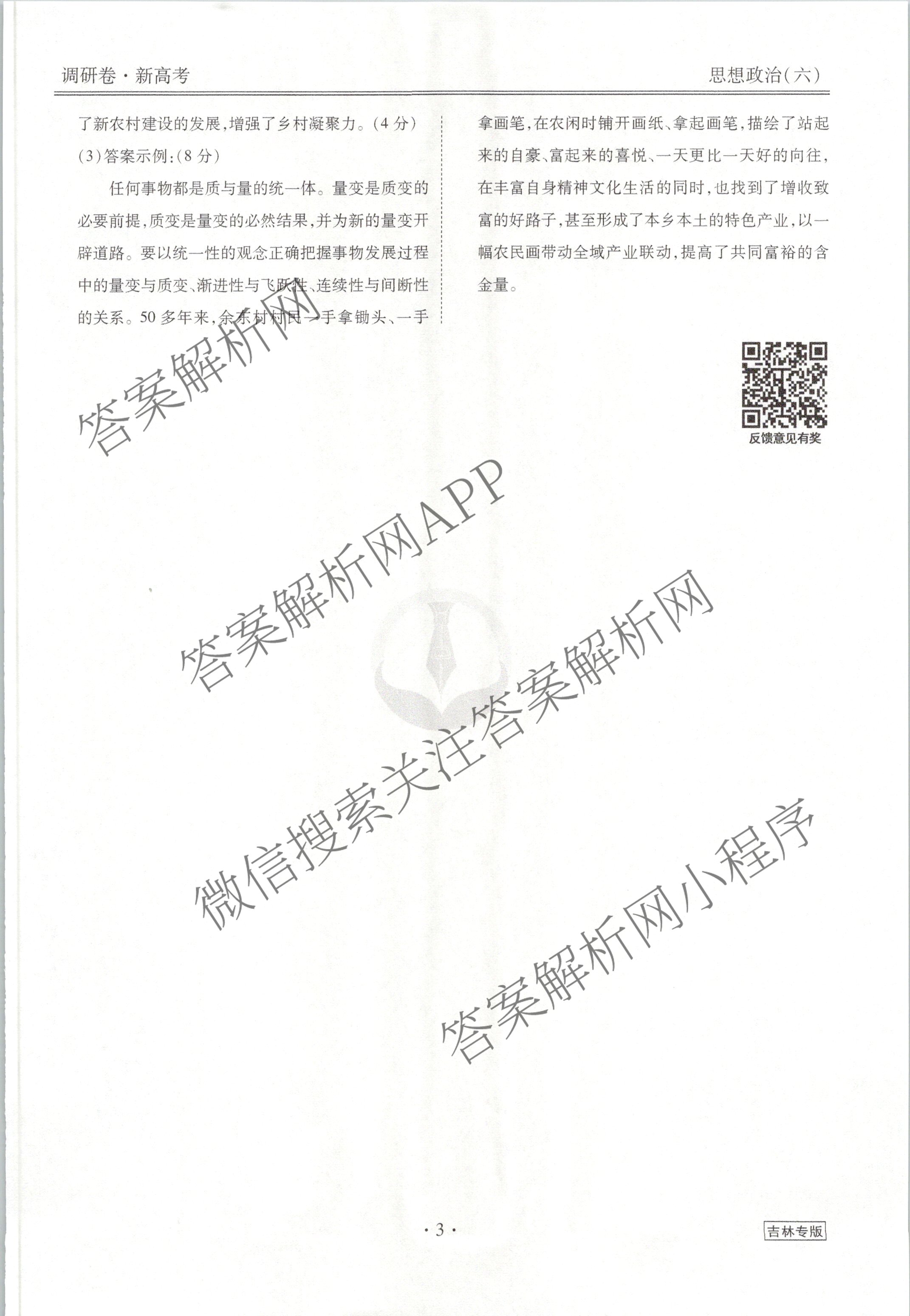 (高三)[衡水金卷先享题]·调研卷 2024年普通高中学业水平选择性考试模拟试题(六)6政治(吉林专版)答案