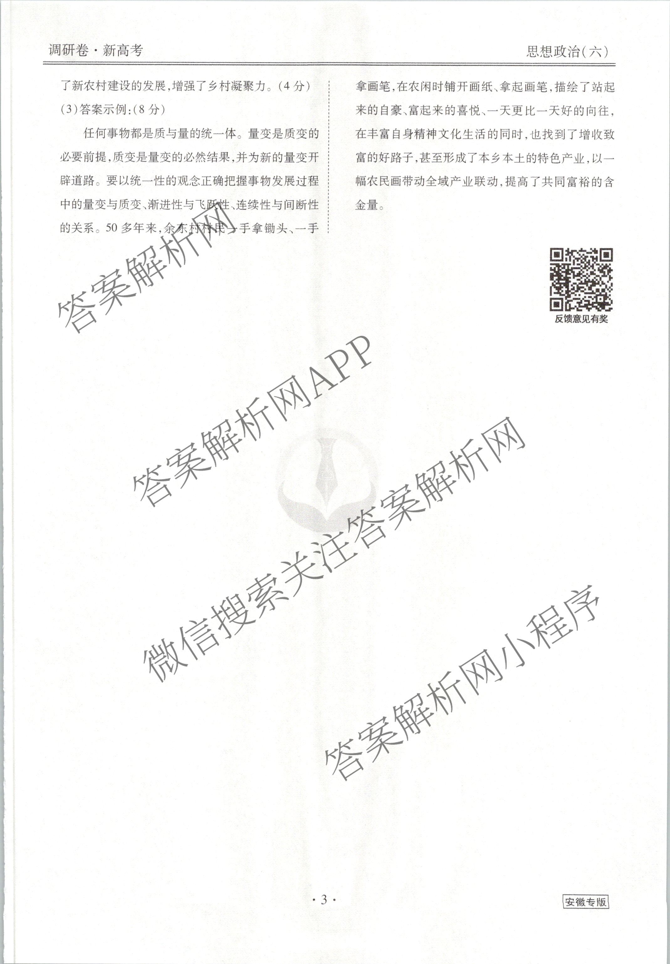 [衡水金卷先享题]调研卷 2024年普通高中学业水平选择性考试模拟试题(六)6政治(安徽专版)答案