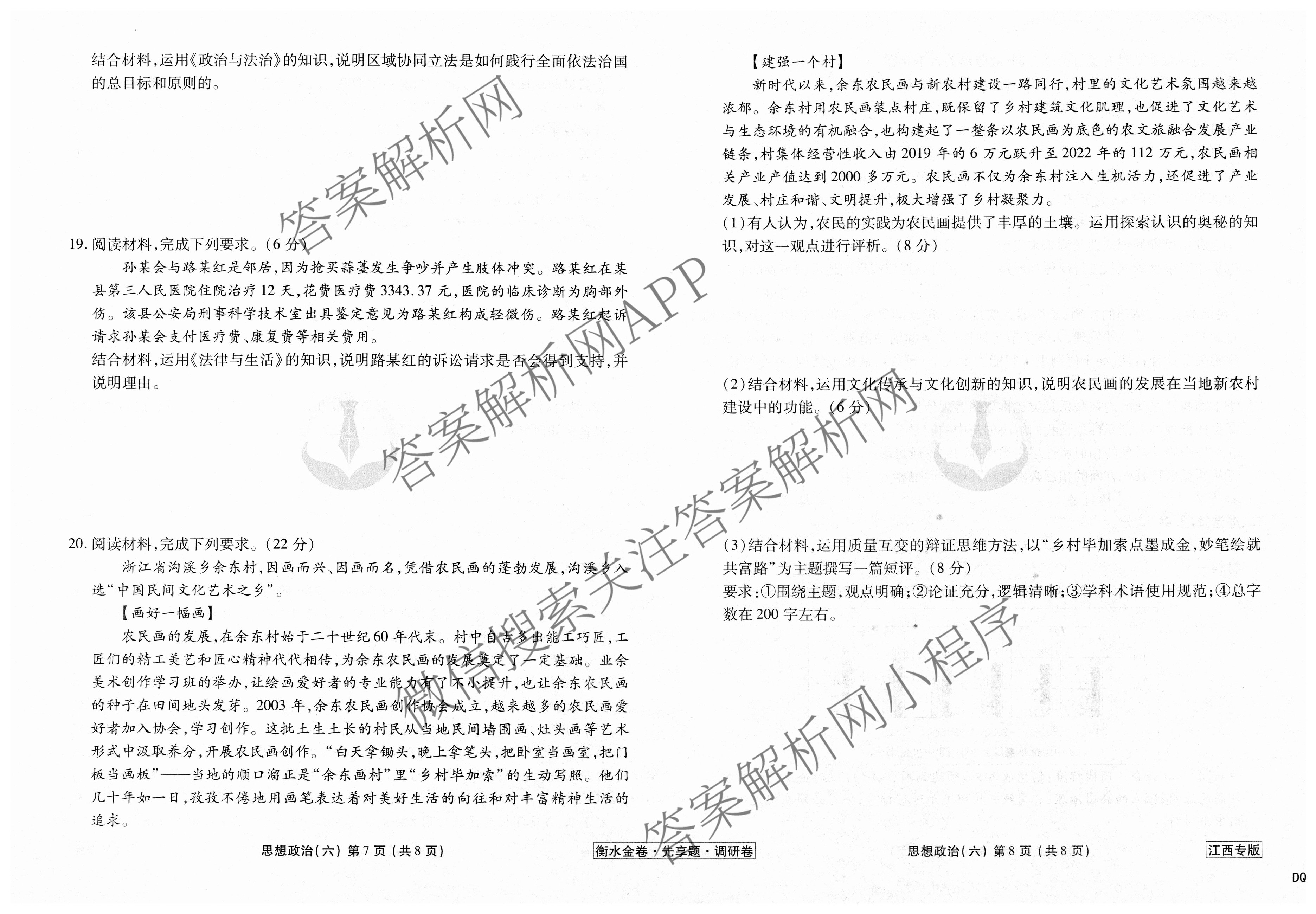 衡水金卷先享题调研卷 2024年普通高中学业水平选择性考试模拟试题(六)6政治(江西专版)试题