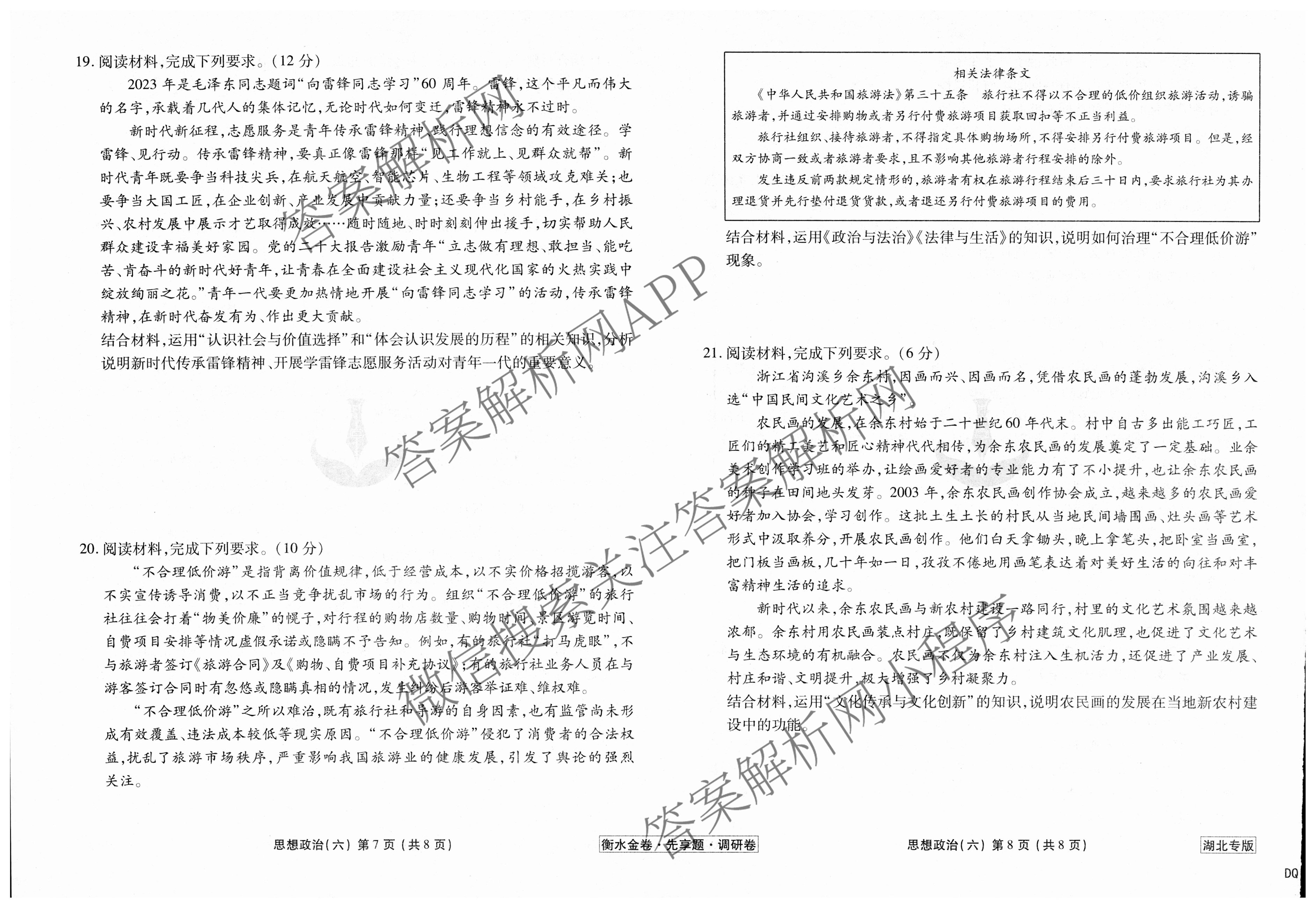 衡水金卷先享题·调研卷 2024年普通高中学业水平选择性考试模拟试题(六)6政治(湖北专版)试题,目前衡水金卷先享题答案网已经汇总了衡水金卷先享题·调研卷 2024年普通高中学业水平选择性考试模拟试题(六)6政治(湖北专版)试题的各科答案和试卷,获取更多衡水金卷先享题答案解析,请在关注本站。