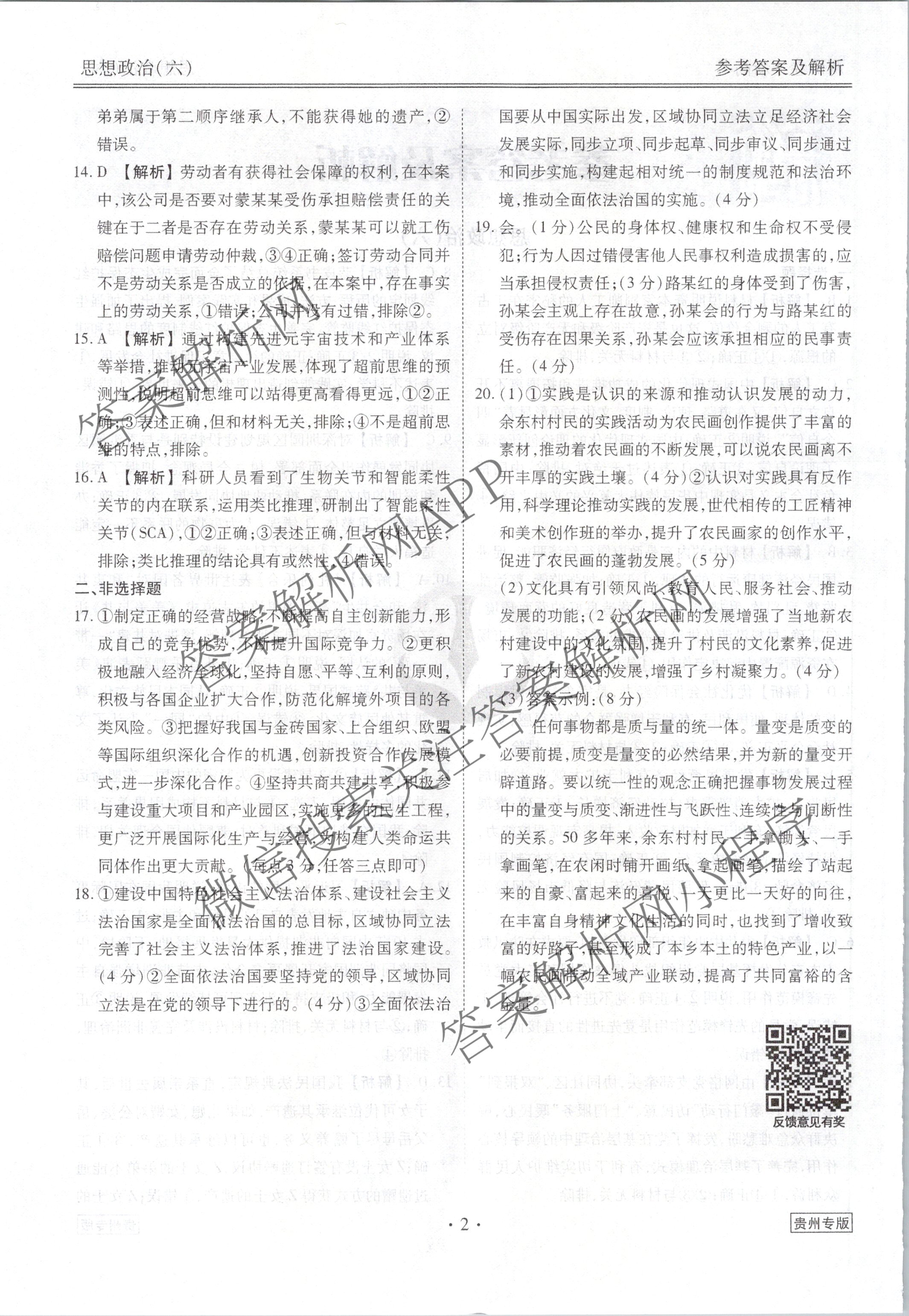 [衡水金卷先享题]·调研卷 2024年普通高中学业水平选择性考试模拟试题(六)6政治(贵州专版)答案