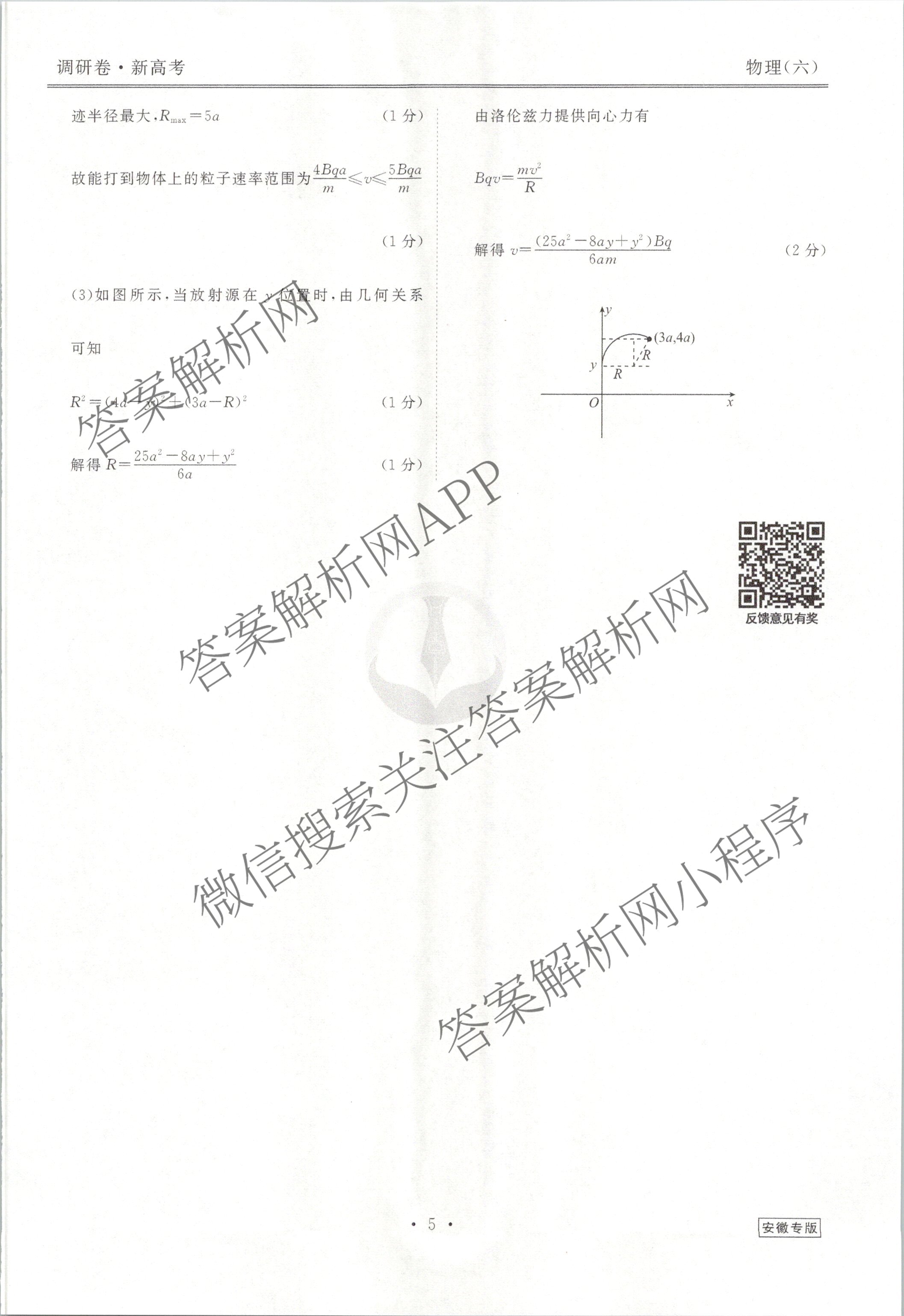 高三[衡水金卷先享题]调研卷 2024年普通高中学业水平选择性考试模拟试题(六)6物理(安徽专版)答案