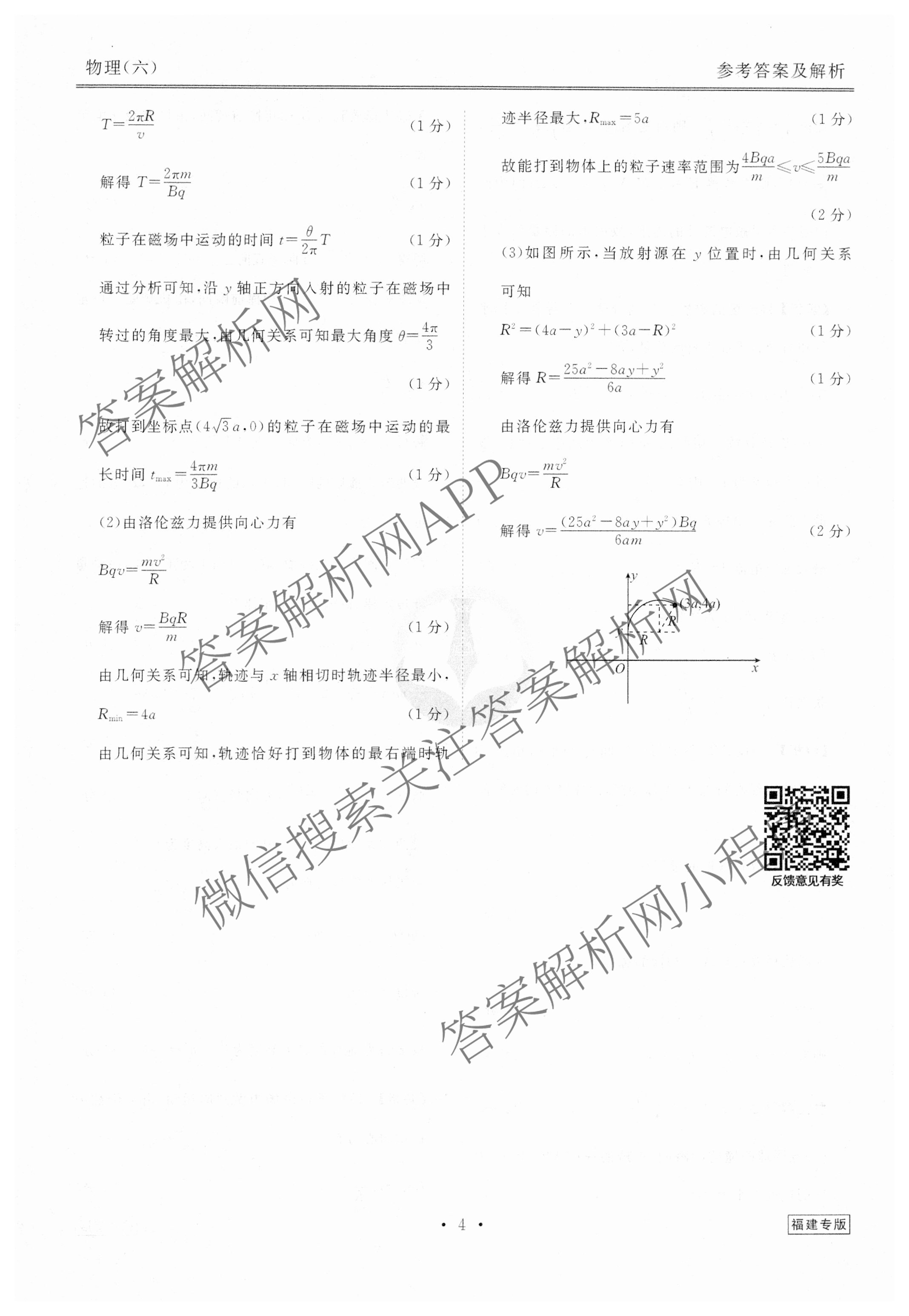 (衡水金卷先享题)调研卷 2024年普通高中学业水平选择性考试模拟试题(六)6物理(福建专版)答案