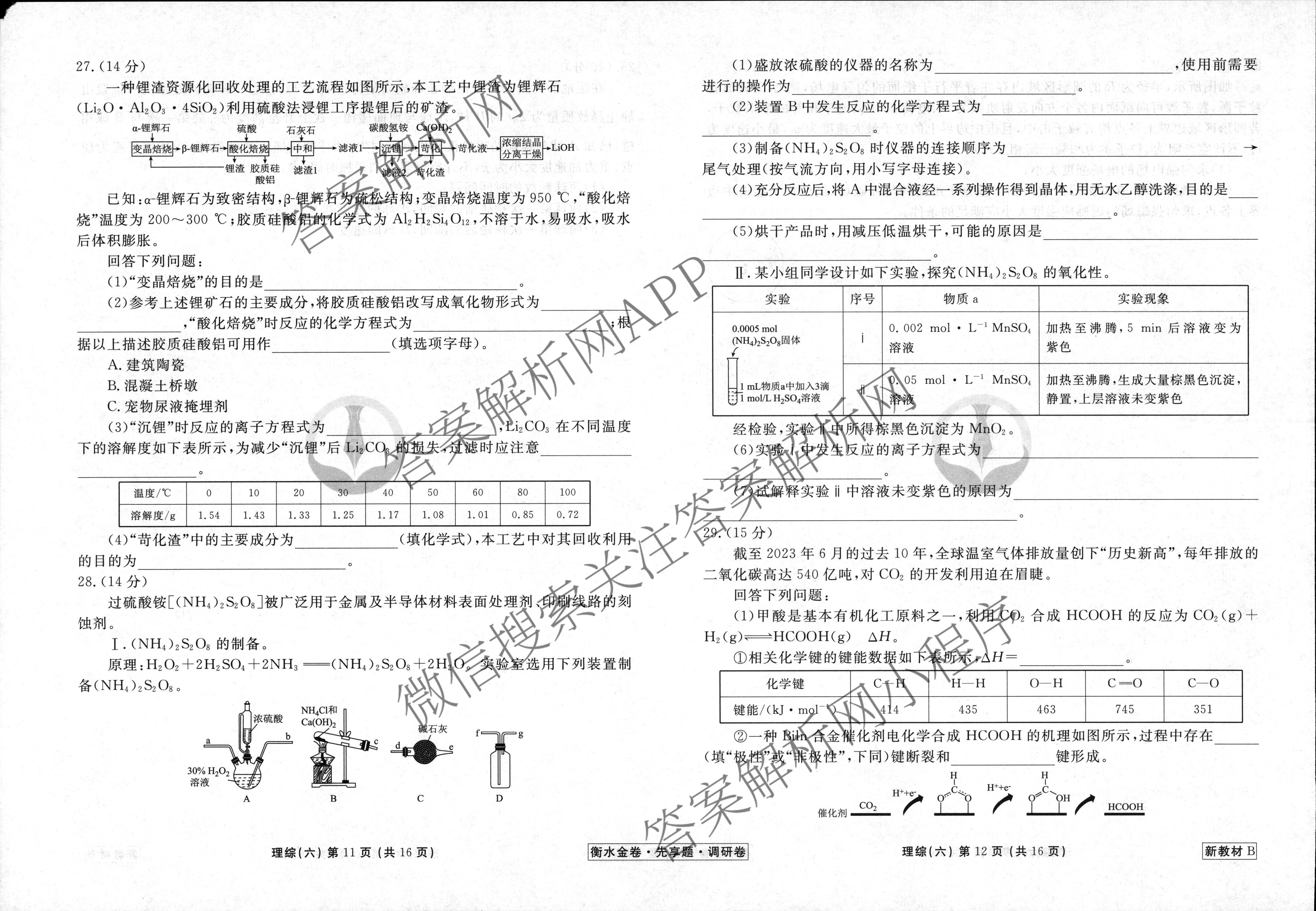 - [衡水金卷先享题]·调研卷2024年普通高等学校招生全国统一考试模拟试题(六)6化学(老高考B)答案