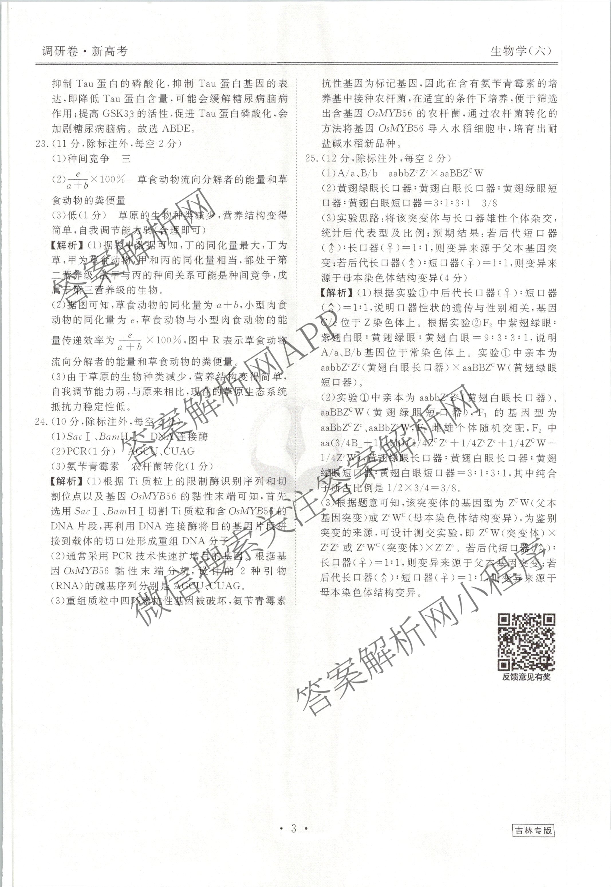 [衡水金卷先享题]调研卷 2024年普通高中学业水平选择性考试模拟试题(六)6生物(吉林专版)答案
