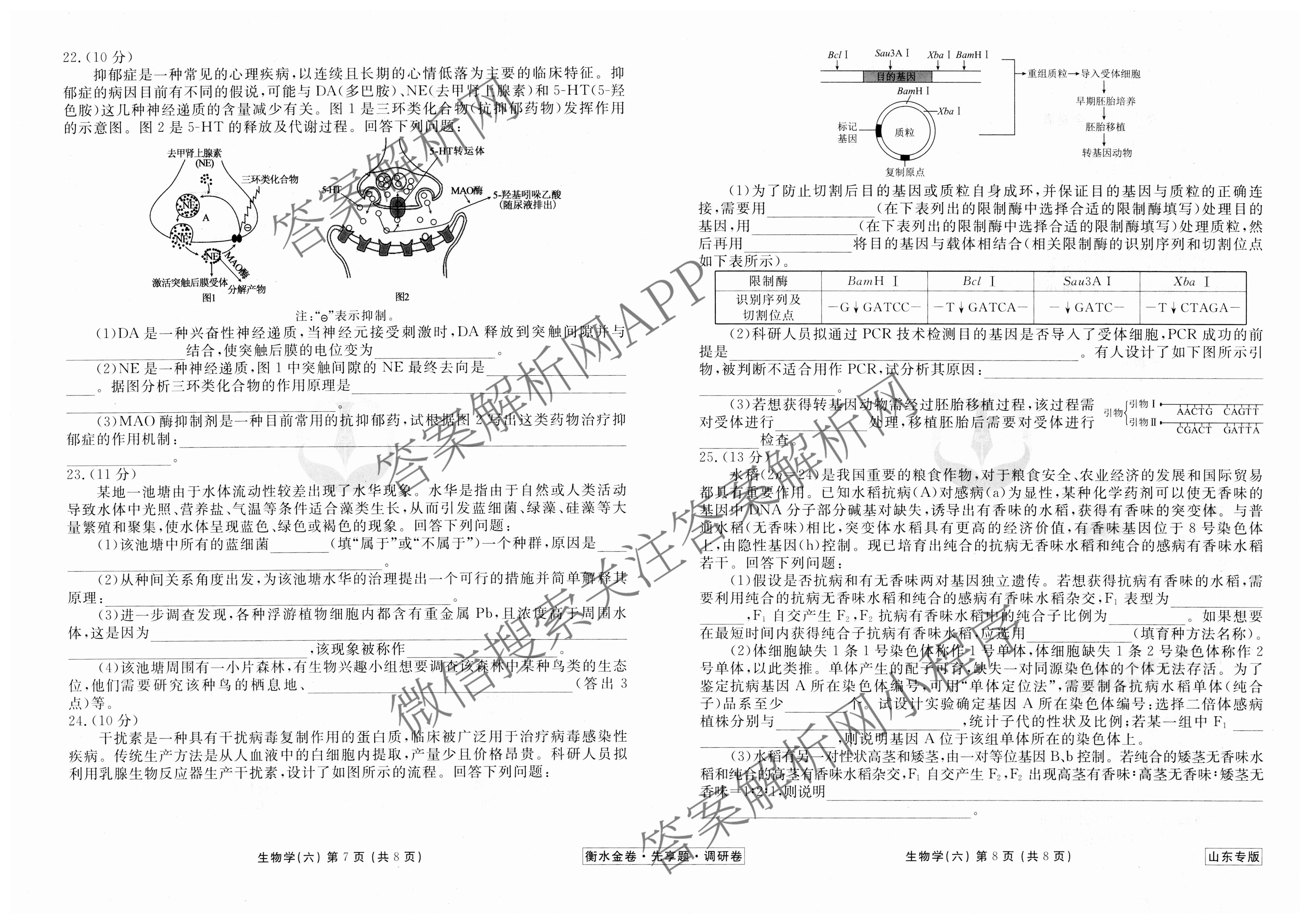 衡水金卷先享题·调研卷 2024年普通高中学业水平选择性考试模拟试题(六)6生物(山东专版)试题,目前衡水金卷先享题答案网已经汇总了衡水金卷先享题·调研卷 2024年普通高中学业水平选择性考试模拟试题(六)6生物(山东专版)试题的各科答案和试卷,获取更多衡水金卷先享题答案解析,请在关注本站。