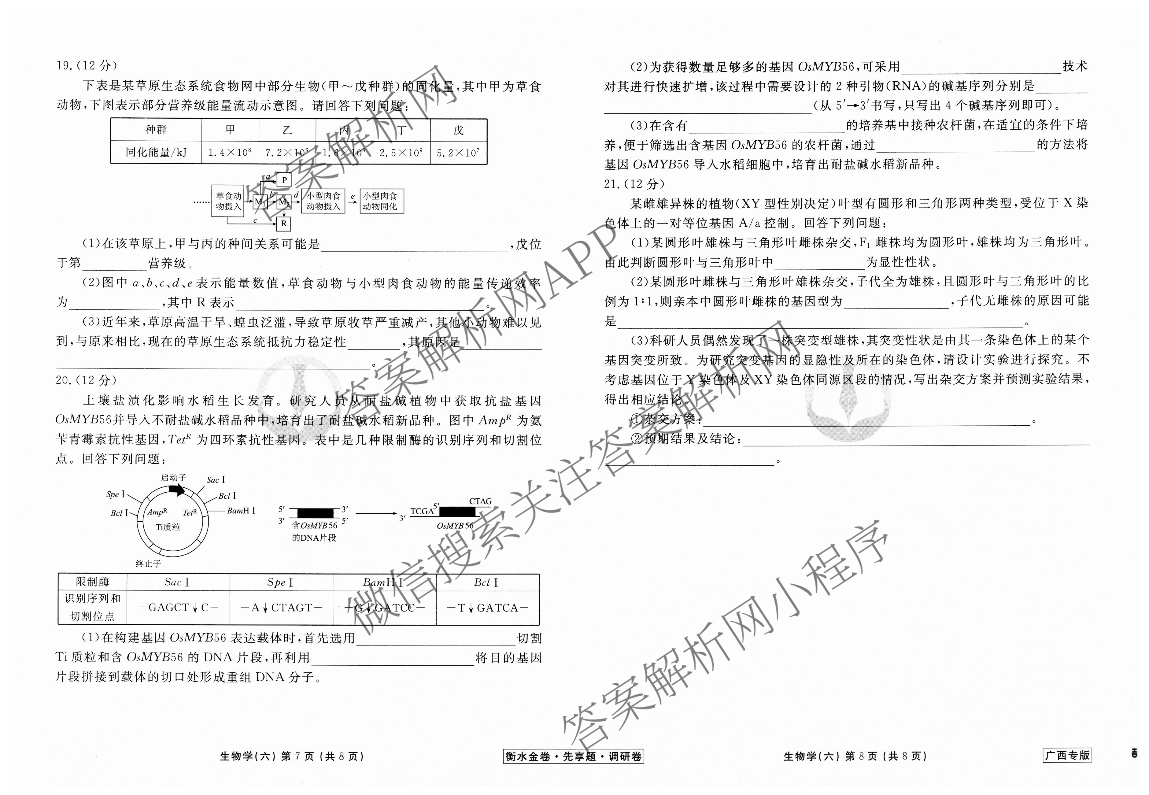 衡水金卷先享题·调研卷 2024年普通高中学业水平选择性考试模拟试题(六)6生物(广西专版)试题,目前衡水金卷先享题答案网已经汇总了衡水金卷先享题·调研卷 2024年普通高中学业水平选择性考试模拟试题(六)6生物(广西专版)试题的各科答案和试卷,获取更多衡水金卷先享题答案解析,请在关注本站。
