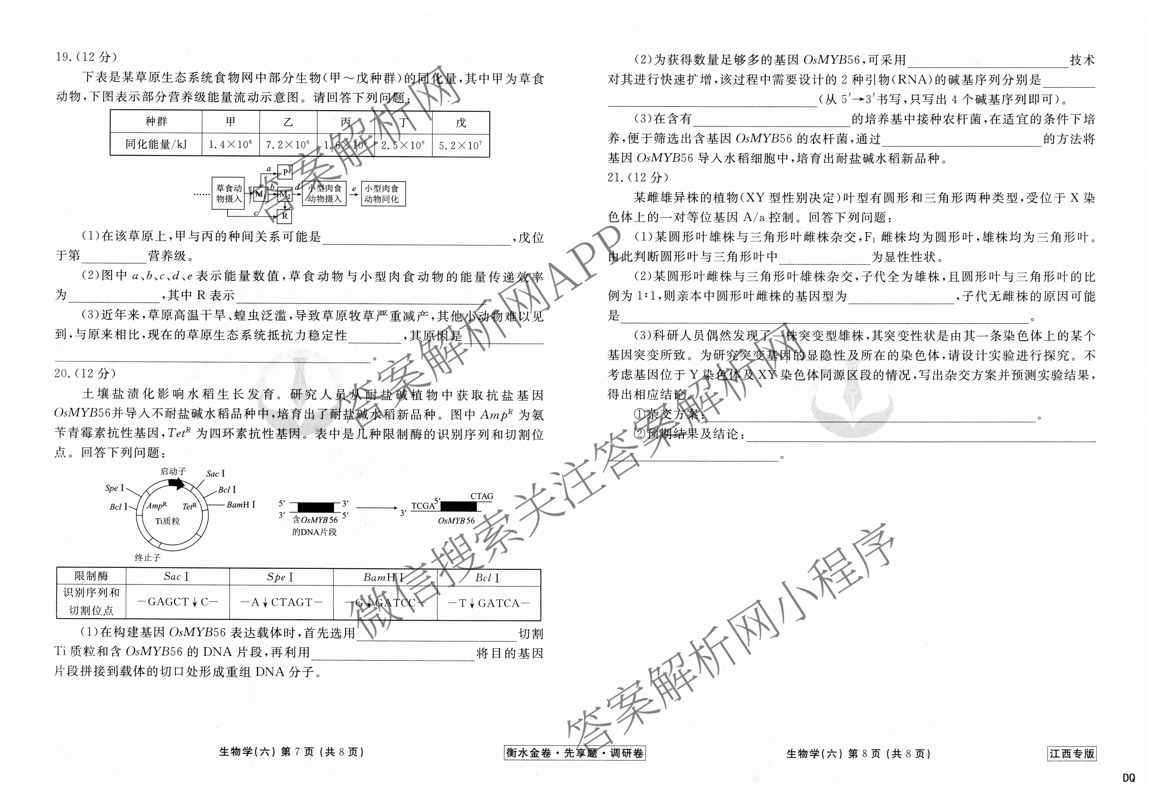衡水金卷先享题·调研卷 2024年普通高中学业水平选择性考试模拟试题(六)6生物(江西专版)试题,目前衡水金卷先享题答案网已经汇总了衡水金卷先享题·调研卷 2024年普通高中学业水平选择性考试模拟试题(六)6生物(江西专版)试题的各科答案和试卷,获取更多衡水金卷先享题答案解析,请在关注本站。