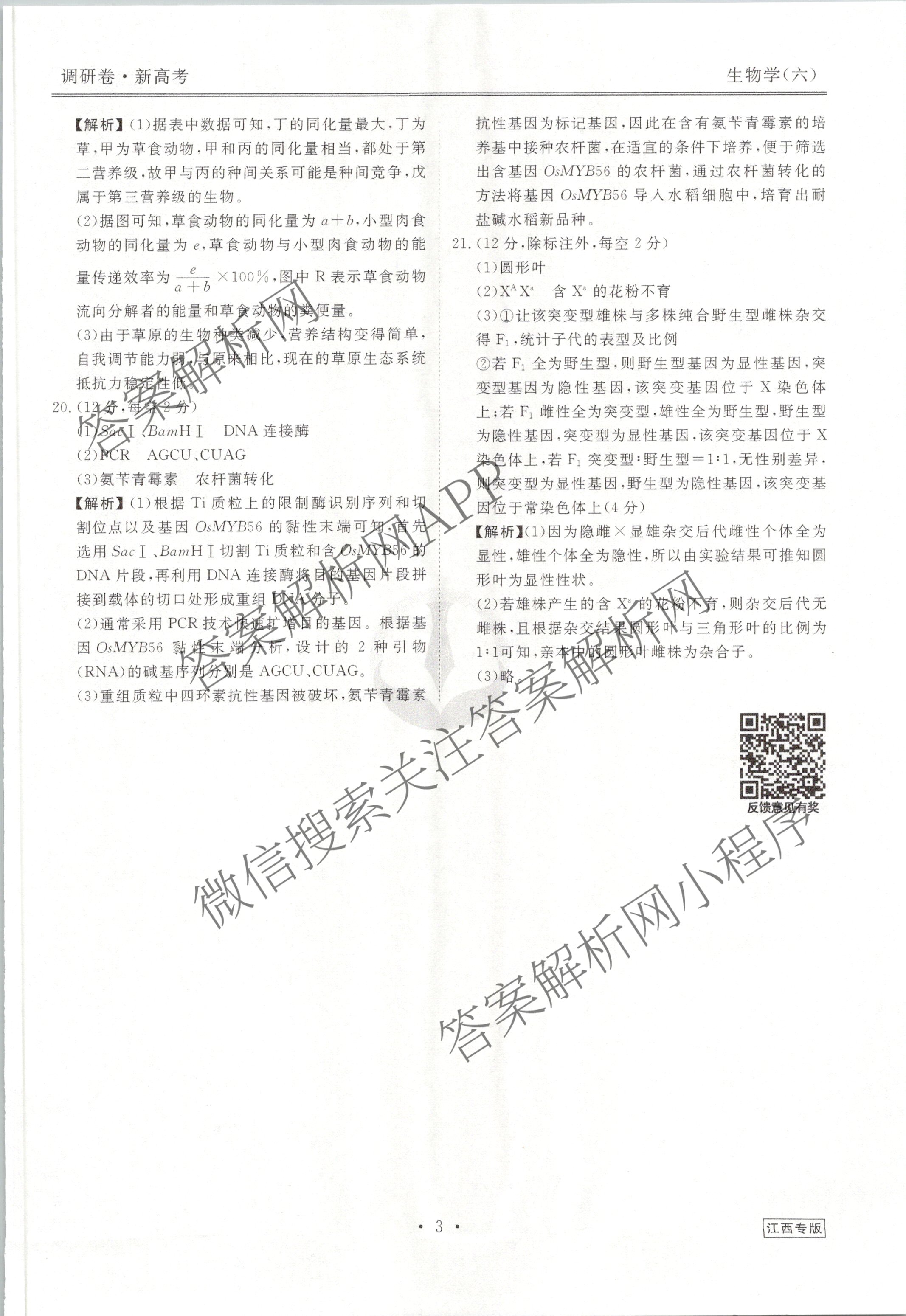 高三(衡水金卷先享题)调研卷 2024年普通高中学业水平选择性考试模拟试题(六)6生物(江西专版)答案
