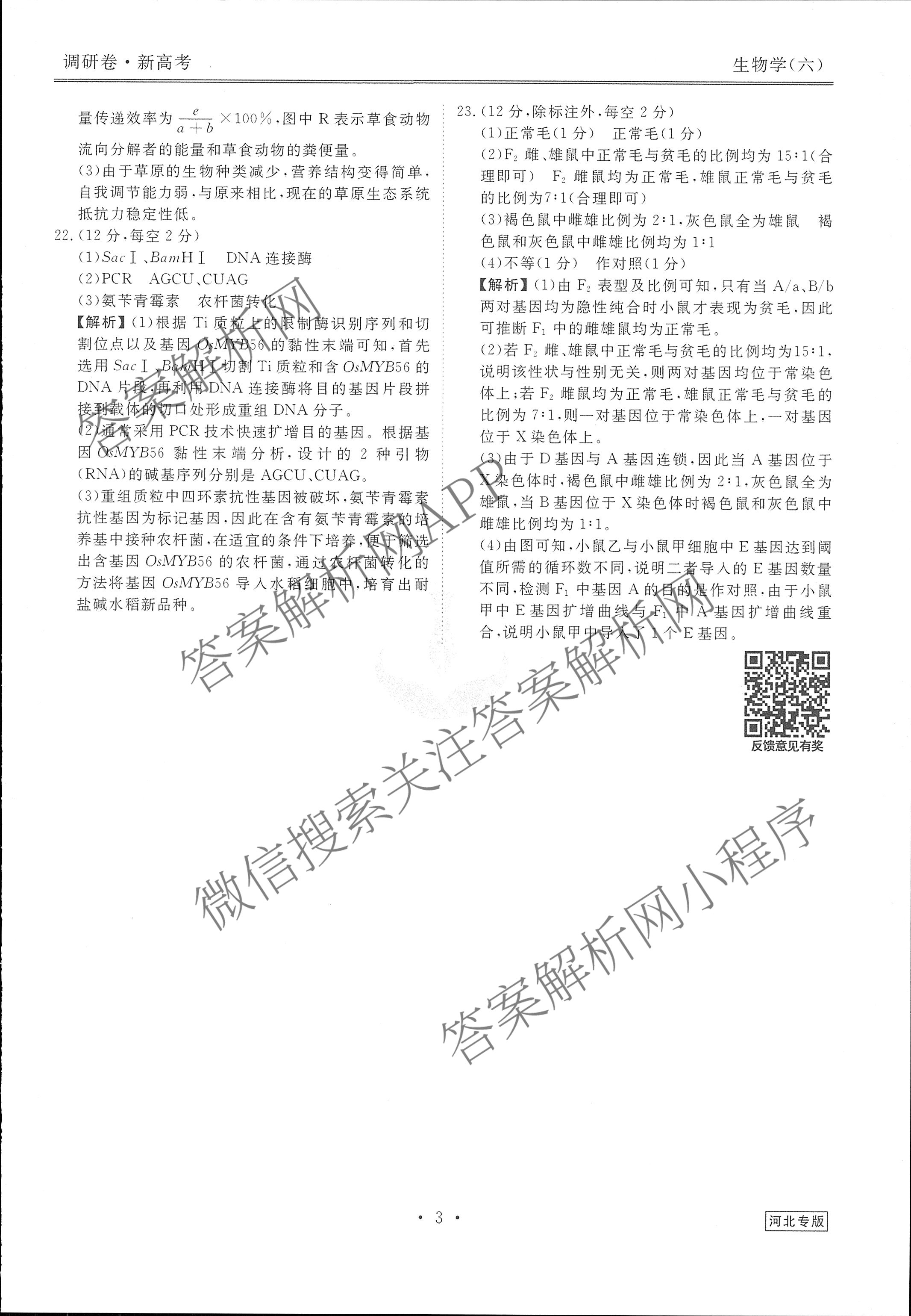 [衡水金卷先享题]调研卷 2024年普通高中学业水平选择性考试模拟试题(六)6生物(河北专版)答案
