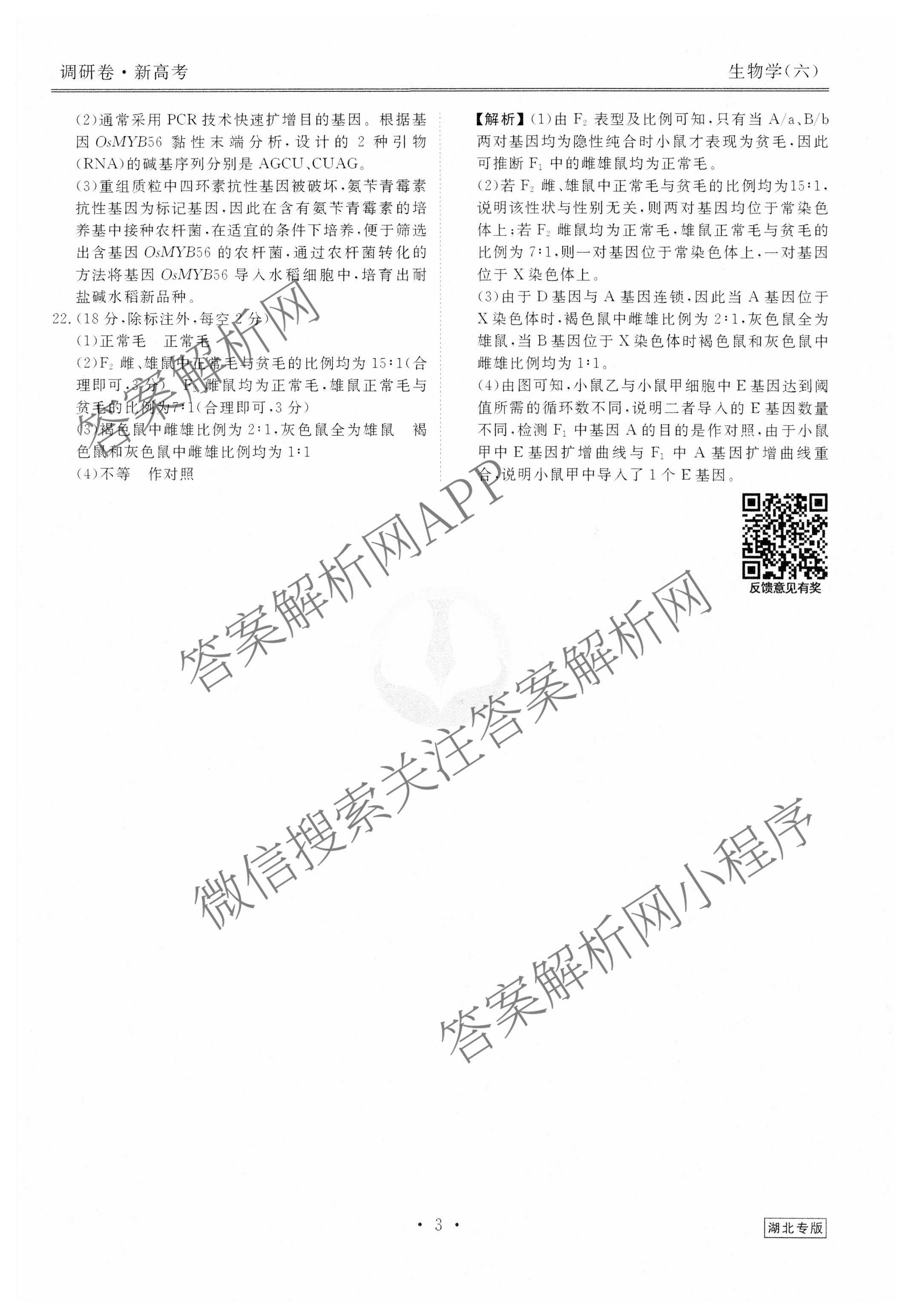 高三衡水金卷先享题调研卷 2024年普通高中学业水平选择性考试模拟试题(六)6生物(湖北专版)答案