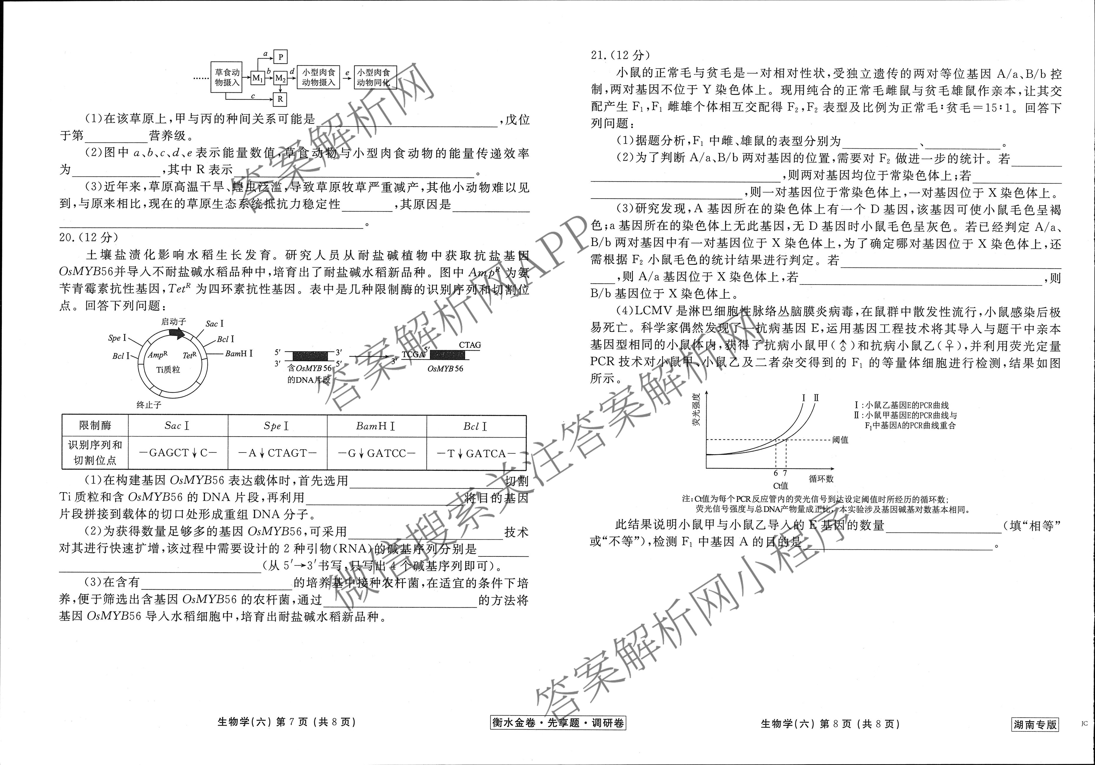 衡水金卷先享题·调研卷 2024年普通高中学业水平选择性考试模拟试题(六)6生物(湖南专版)试题,目前衡水金卷先享题答案网已经汇总了衡水金卷先享题·调研卷 2024年普通高中学业水平选择性考试模拟试题(六)6生物(湖南专版)试题的各科答案和试卷,获取更多衡水金卷先享题答案解析,请在关注本站。