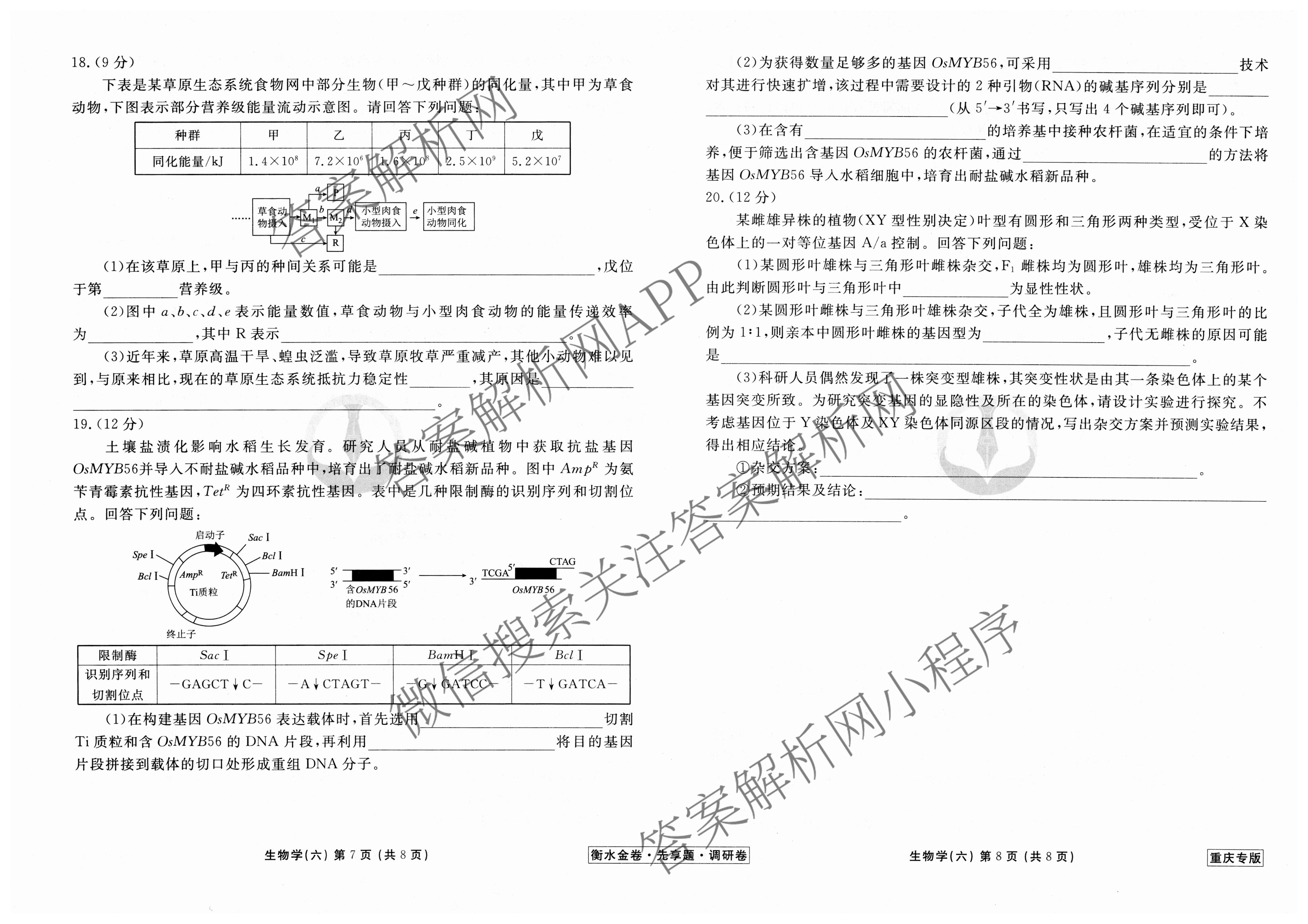 衡水金卷先享题·调研卷 2024年普通高中学业水平选择性考试模拟试题(六)6生物(重庆专版)试题,目前衡水金卷先享题答案网已经汇总了衡水金卷先享题·调研卷 2024年普通高中学业水平选择性考试模拟试题(六)6生物(重庆专版)试题的各科答案和试卷,获取更多衡水金卷先享题答案解析,请在关注本站。