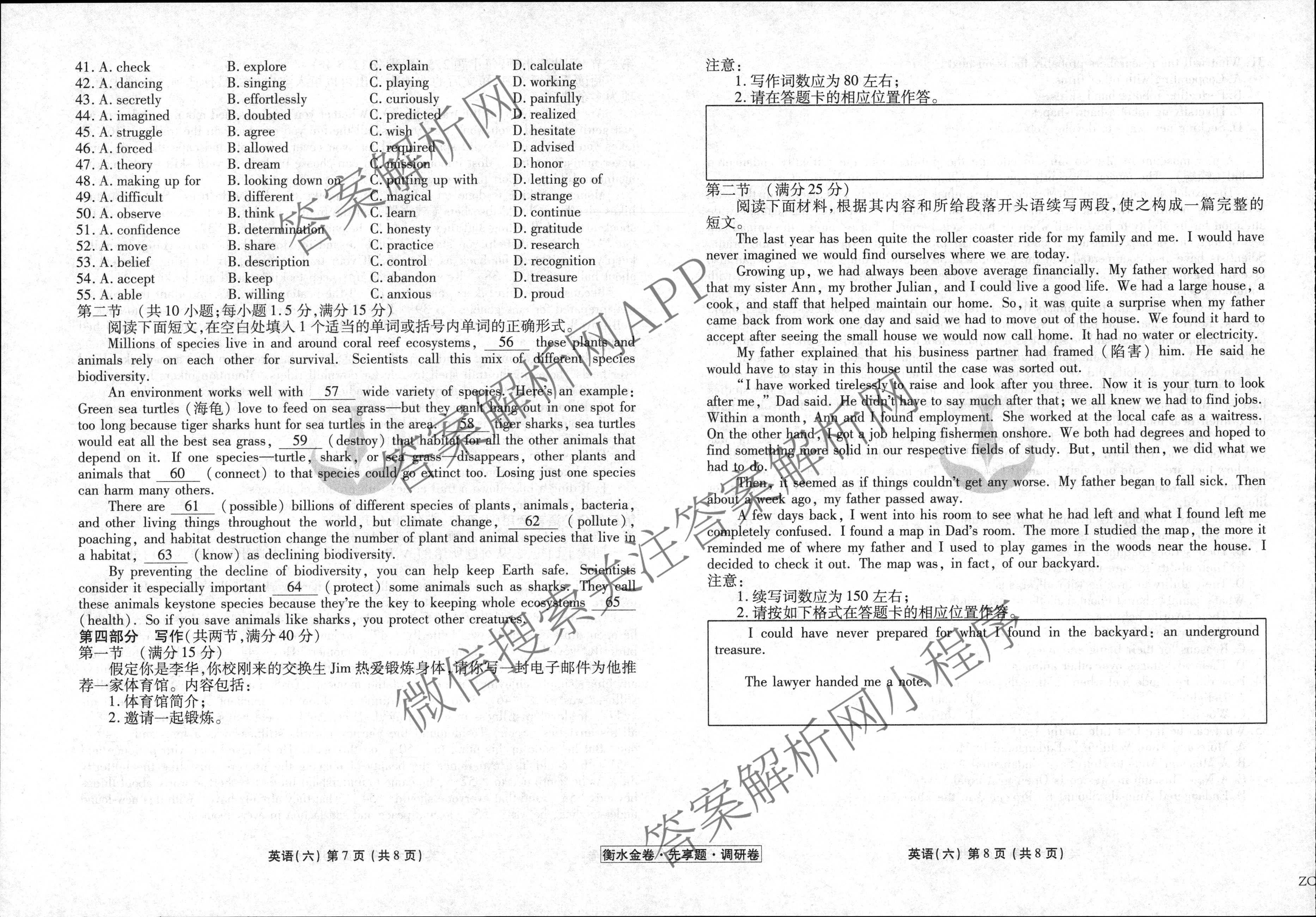 衡水金卷先享题·调研卷 2024年普通高等学校招生全国统一考试模拟试题(六)6英语(新教材)试题,目前衡水金卷先享题答案网已经汇总了衡水金卷先享题·调研卷 2024年普通高等学校招生全国统一考试模拟试题(六)6英语(新教材)试题的各科答案和试卷,获取更多衡水金卷先享题答案解析,请在关注本站。