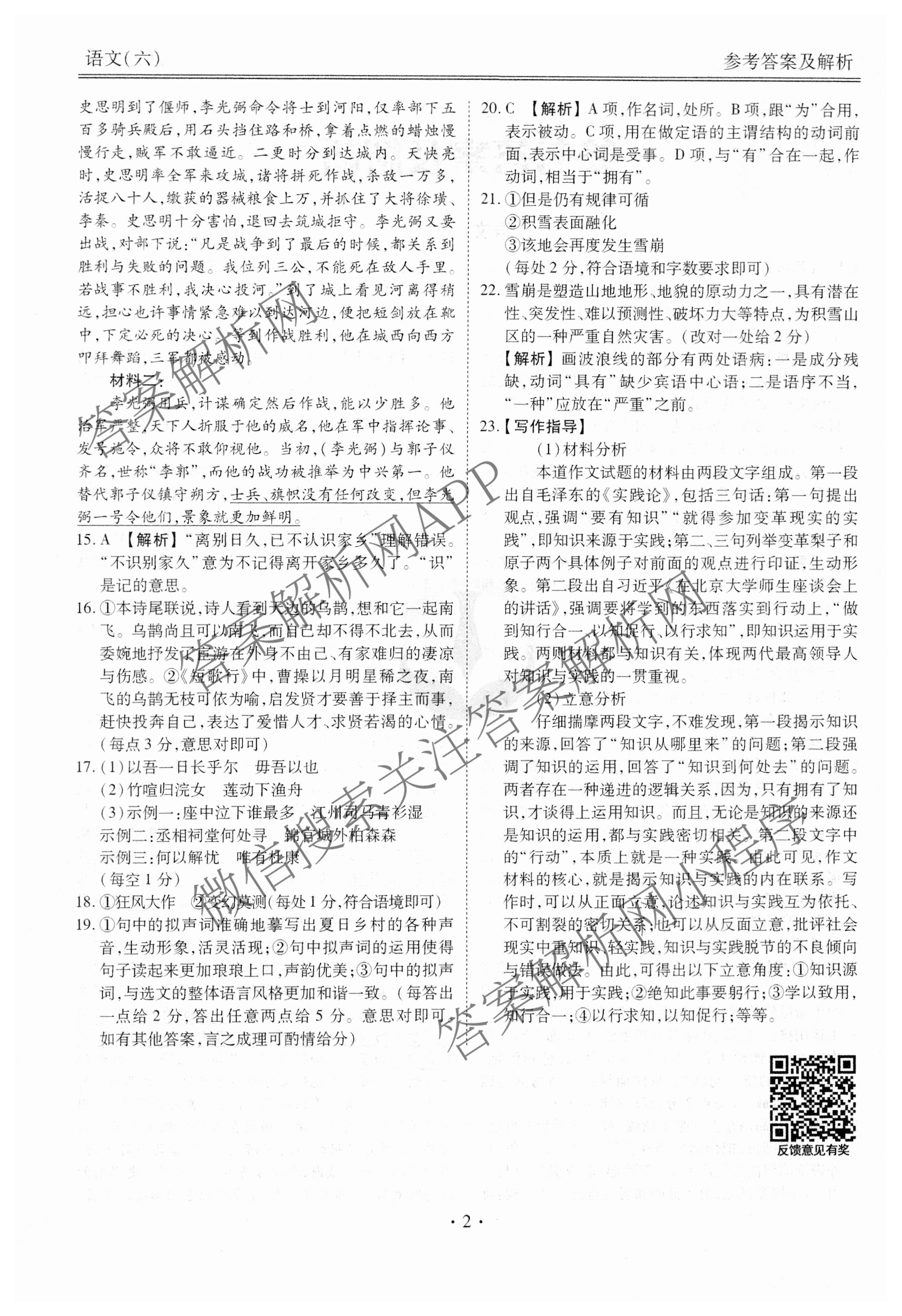 [衡水金卷先享题]·调研卷 2024年普通高等学校招生全国统一考试模拟试题(六)6语文(新教材)答案