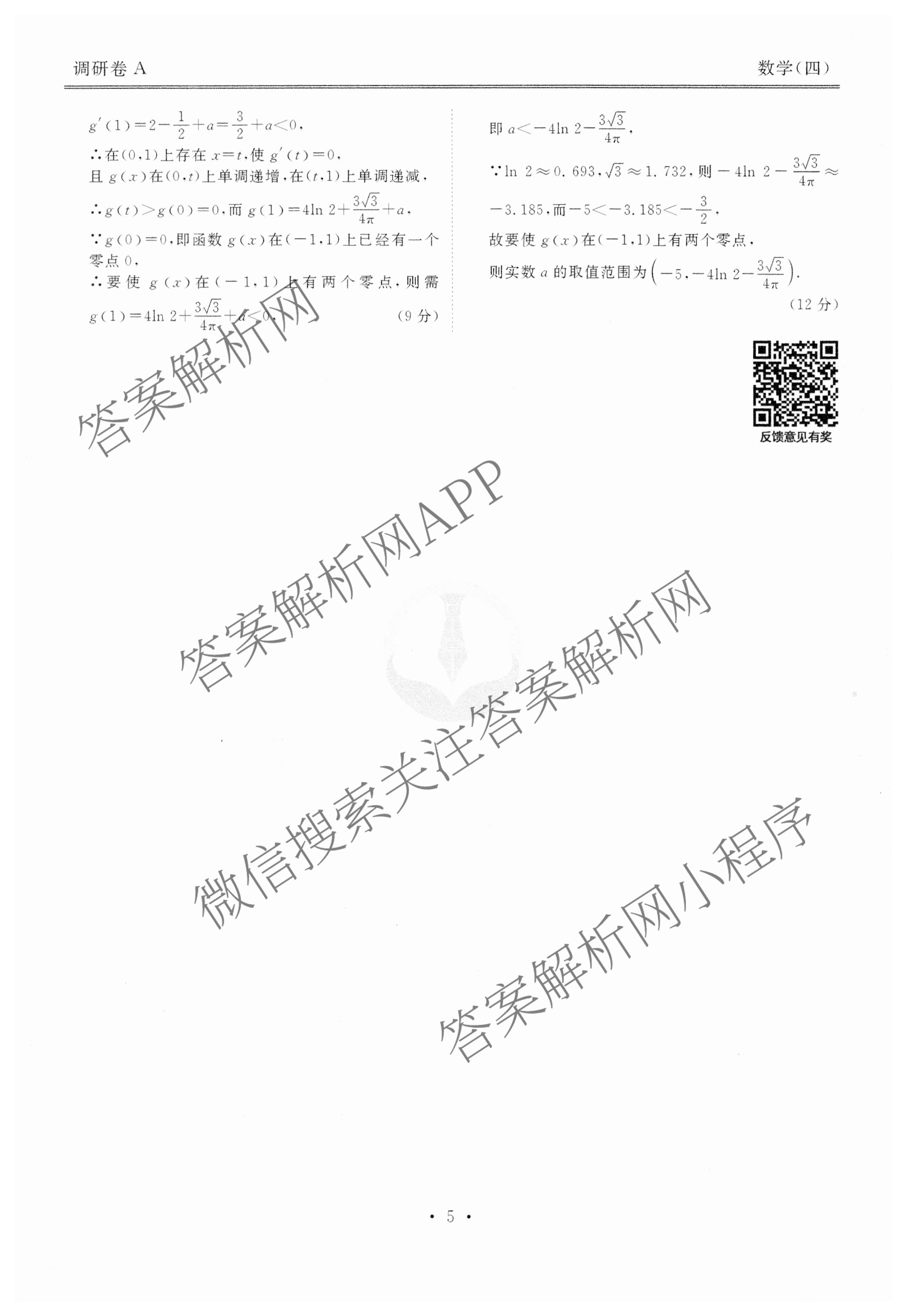 [衡水金卷先享题]·调研卷 2024年普通高等学校招生全国统一考试模拟试题(四)4数学(A)答案