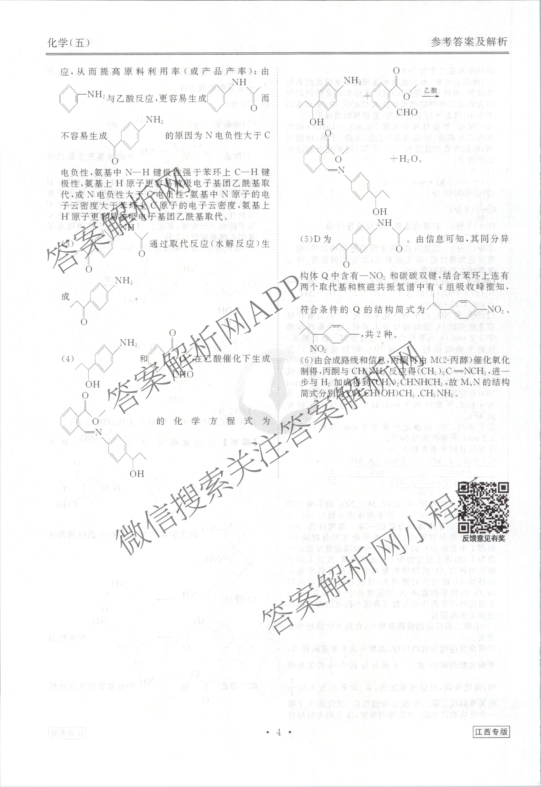 (衡水金卷先享题)·调研卷 2024年普通高中学业水平选择性考试模拟试题(五)5化学(江西专版)答案