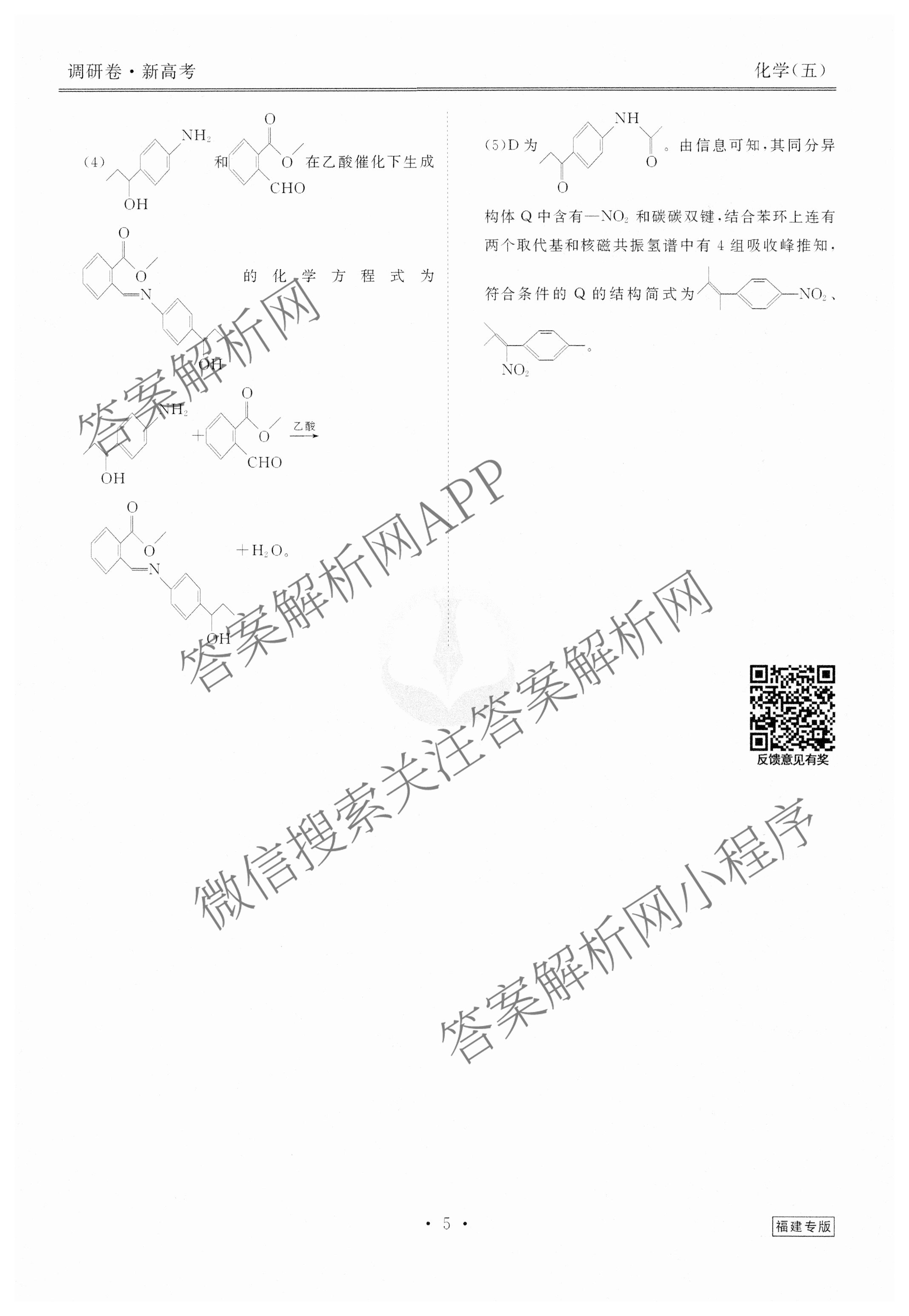 (高三)衡水金卷先享题·调研卷 2024年普通高中学业水平选择性考试模拟试题(五)5化学(福建专版)答案