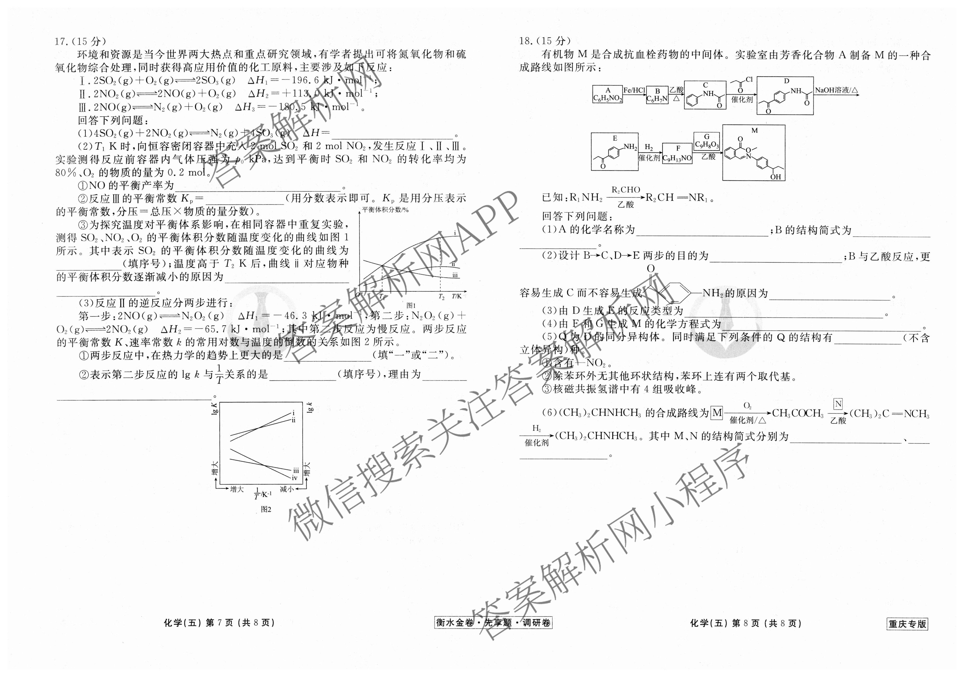 - [高三](衡水金卷先享题)·调研卷 2024年普通高中学业水平选择性考试模拟试题(五)5化学(重庆专版)答案