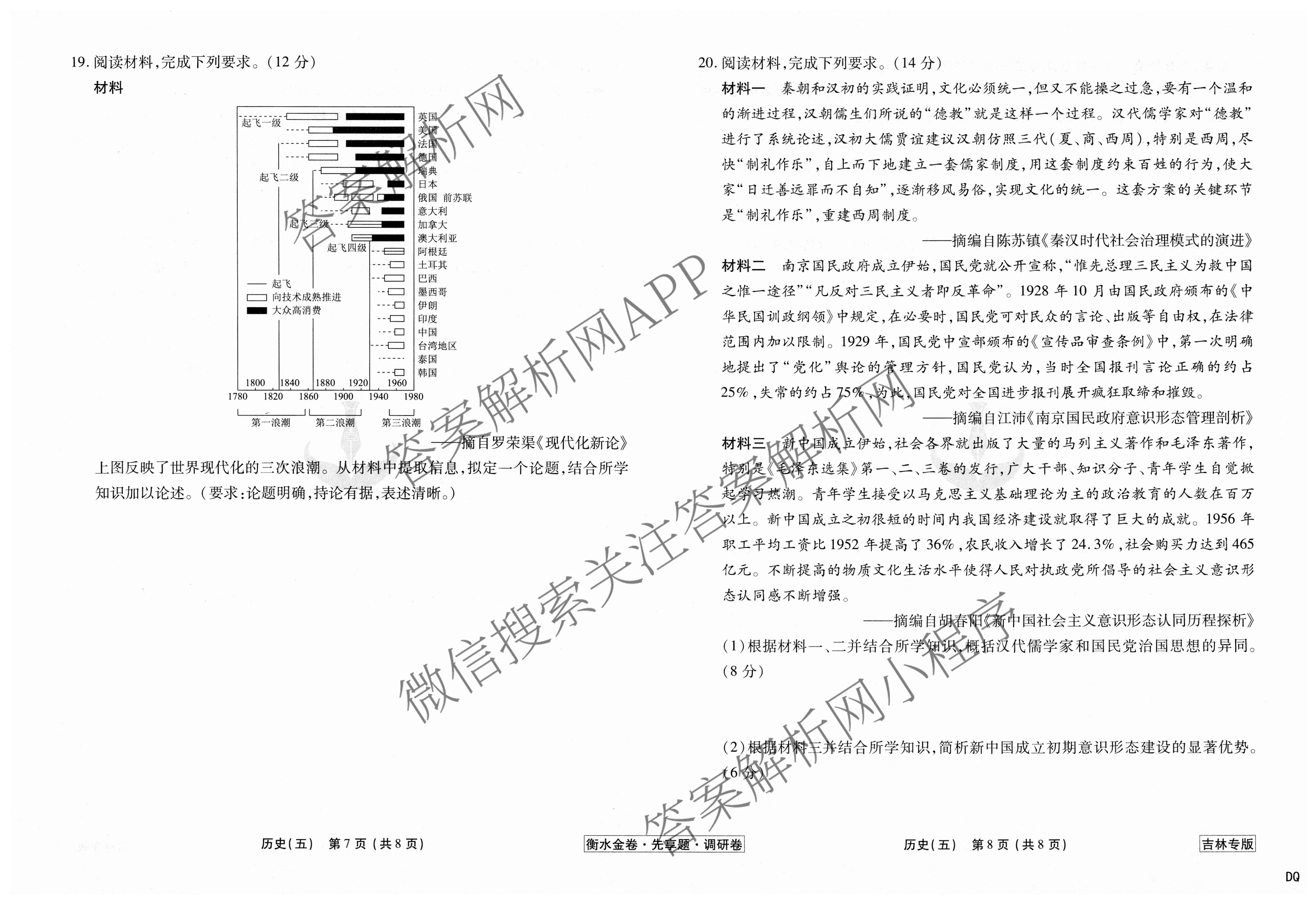 衡水金卷先享题·调研卷 2024年普通高中学业水平选择性考试模拟(五)5历史(吉林专版)试题,目前衡水金卷先享题答案网已经汇总了衡水金卷先享题·调研卷 2024年普通高中学业水平选择性考试模拟(五)5历史(吉林专版)试题的各科答案和试卷,获取更多衡水金卷先享题答案解析,请在关注本站。