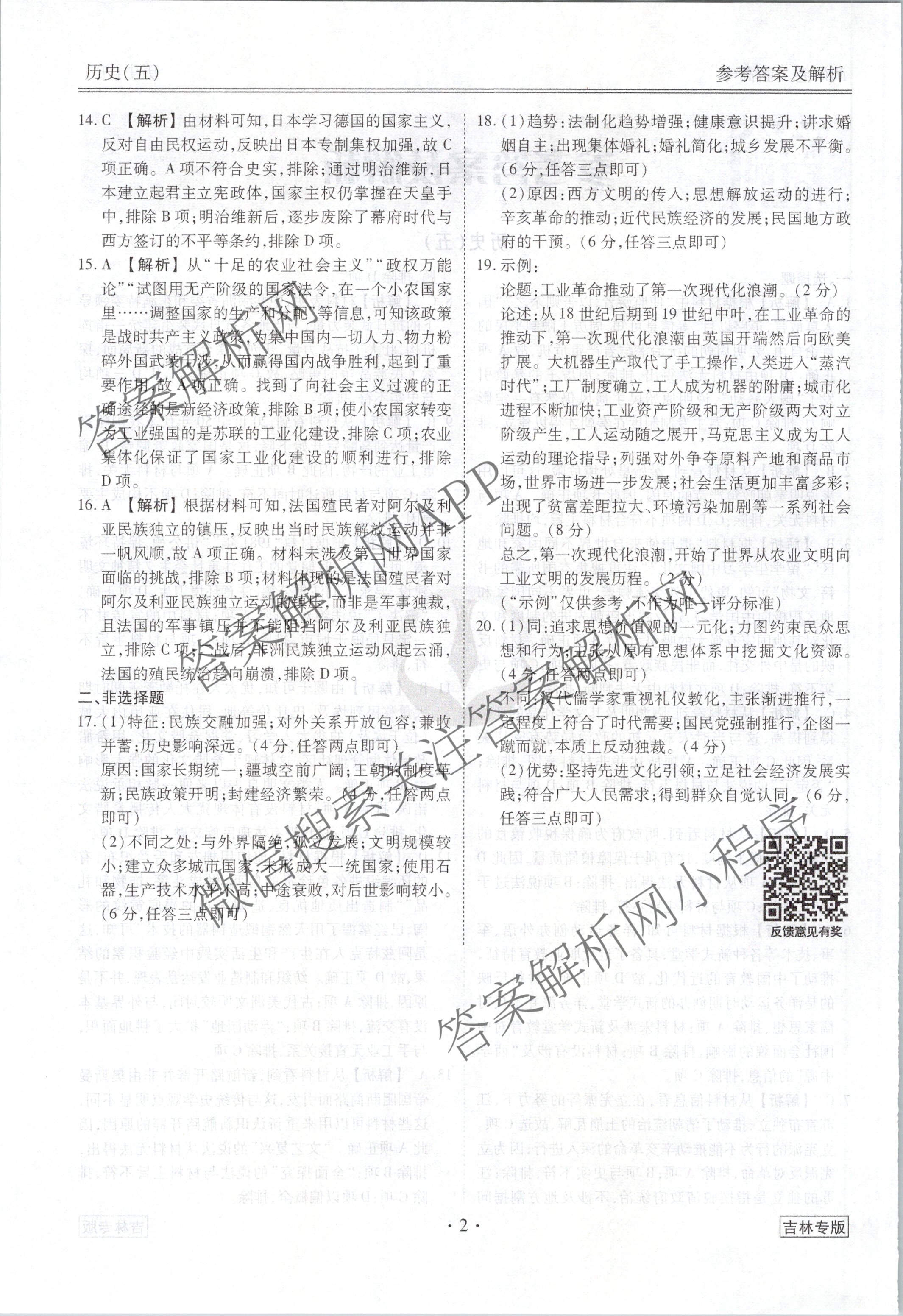 高三[衡水金卷先享题]调研卷 2024年普通高中学业水平选择性考试模拟(五)5历史(吉林专版)答案