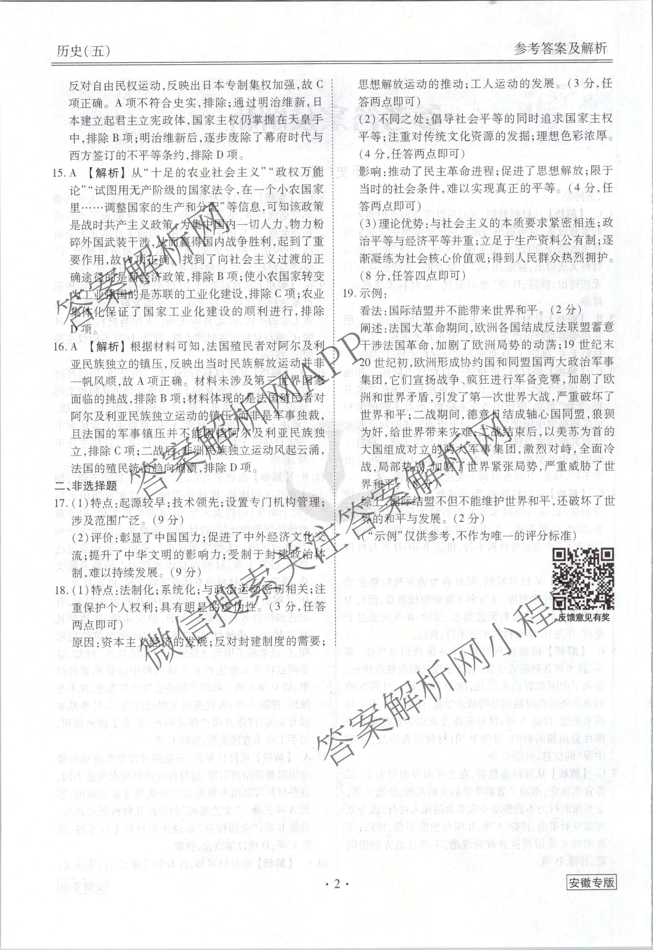 - [衡水金卷先享题]调研卷 2024年普通高中学业水平选择性考试模拟试题(五)5历史(安徽专版)答案