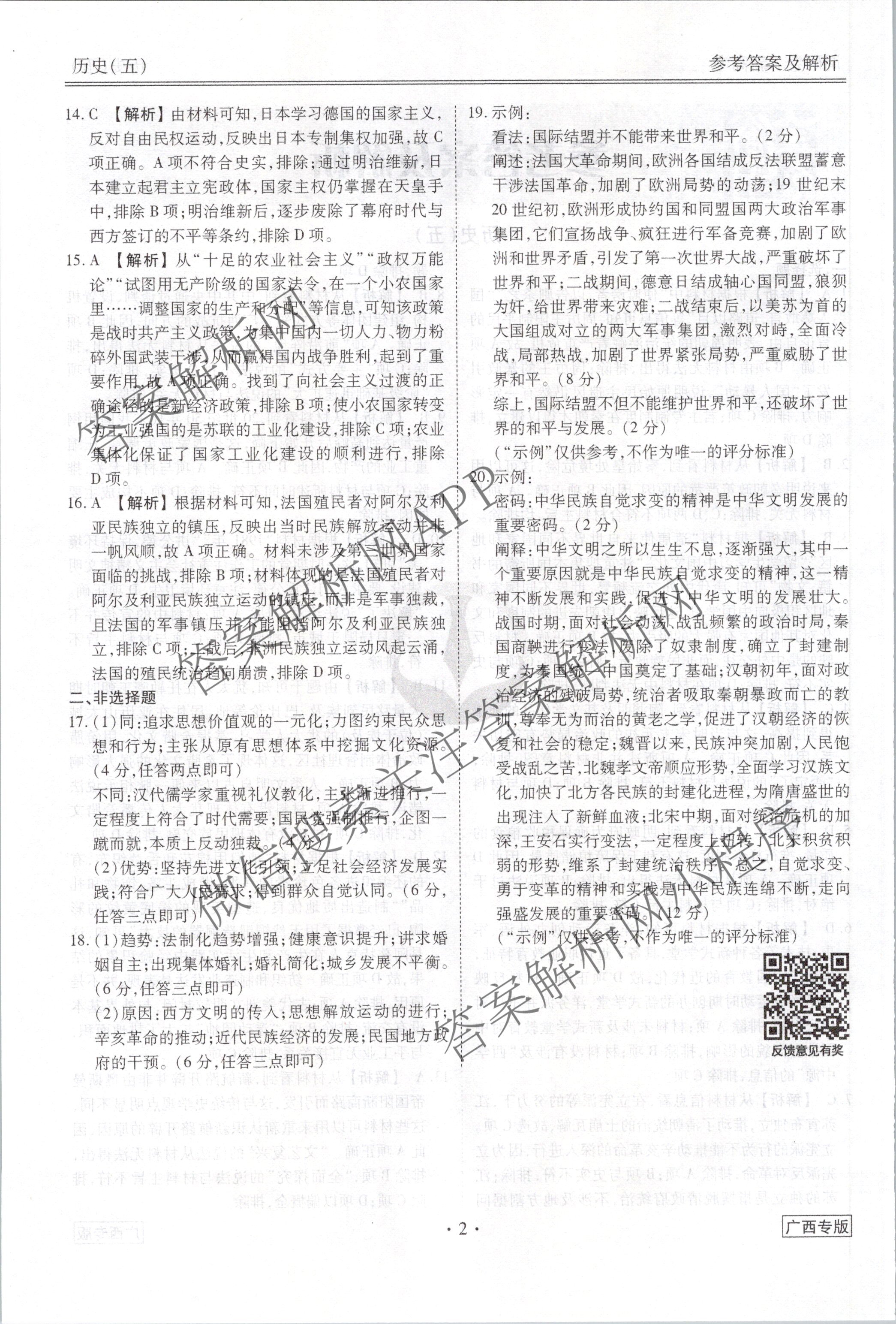 (高三)(衡水金卷先享题)·调研卷 2024年普通高中学业水平选择性考试模拟试题(五)5历史(广西专版)答案