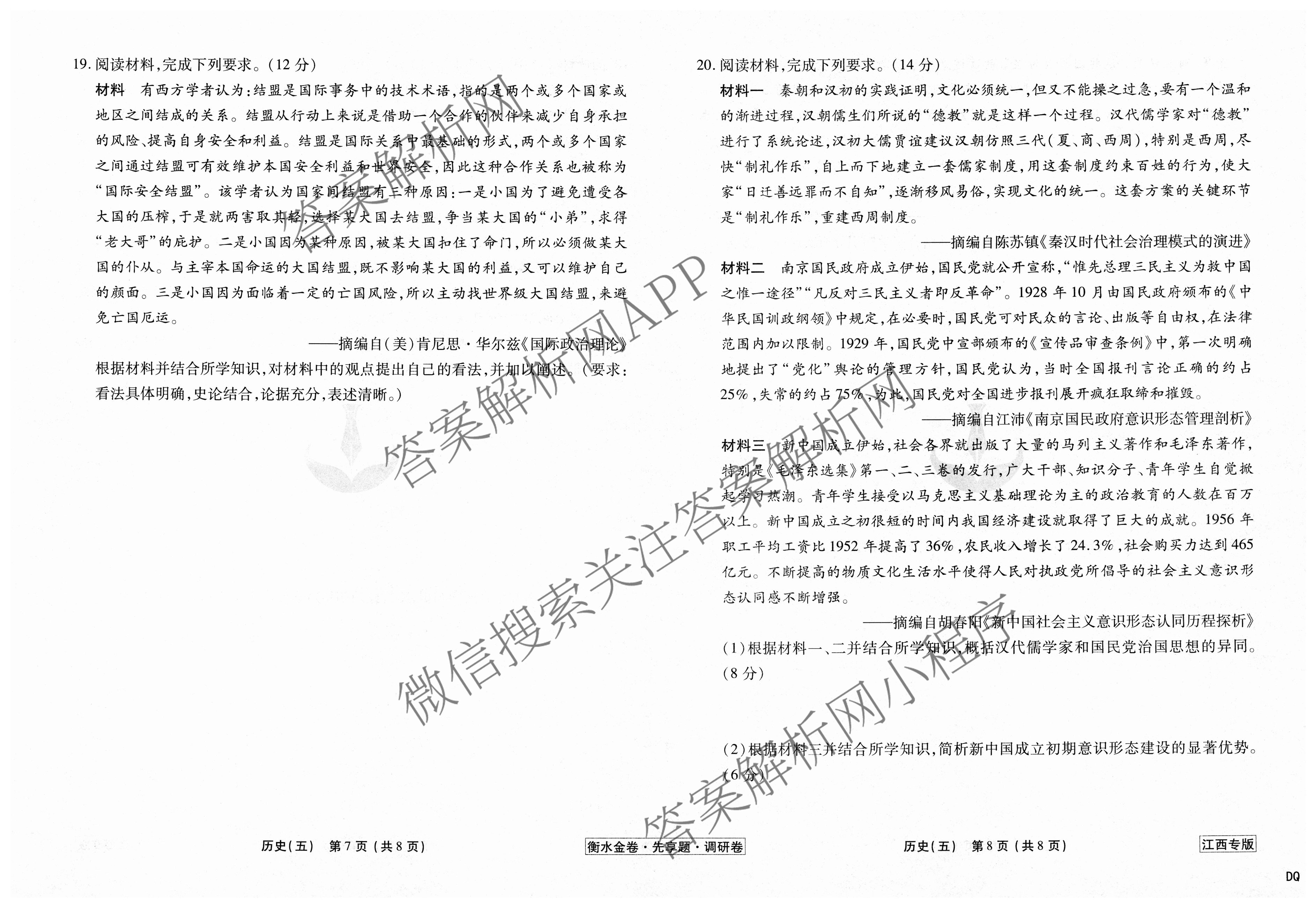 衡水金卷先享题·调研卷 2024年普通高中学业水平选择性考试模拟试题(五)5历史(江西专版)试题,目前衡水金卷先享题答案网已经汇总了衡水金卷先享题·调研卷 2024年普通高中学业水平选择性考试模拟试题(五)5历史(江西专版)试题的各科答案和试卷,获取更多衡水金卷先享题答案解析,请在关注本站。