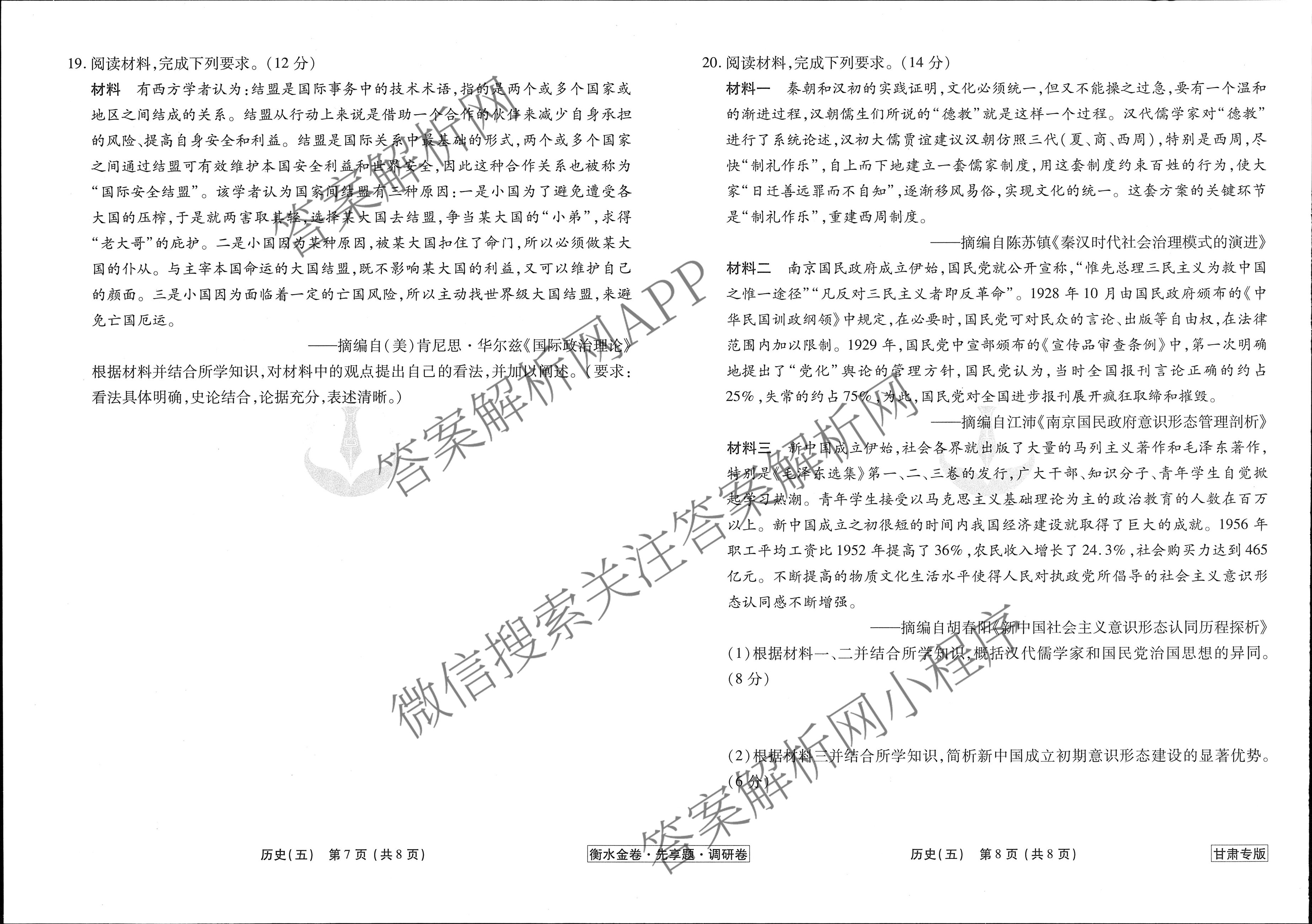 衡水金卷先享题·调研卷 2024年普通高中学业水平选择性考试模拟试题(五)5历史(甘肃专版)试题,目前衡水金卷先享题答案网已经汇总了衡水金卷先享题·调研卷 2024年普通高中学业水平选择性考试模拟试题(五)5历史(甘肃专版)试题的各科答案和试卷,获取更多衡水金卷先享题答案解析,请在关注本站。