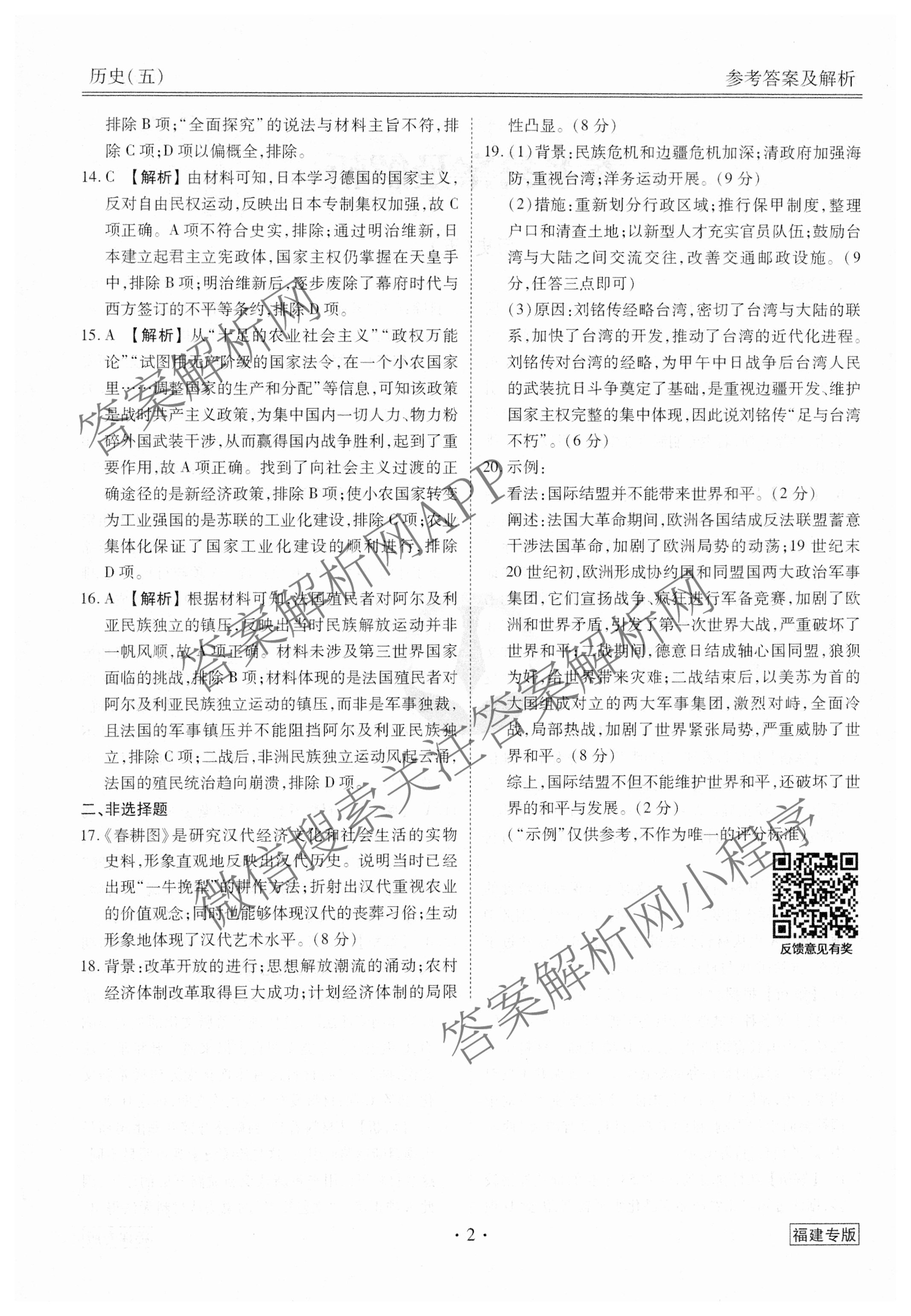 高三(衡水金卷先享题)调研卷 2024年普通高中学业水平选择性考试模拟试题(五)5历史(福建专版)答案