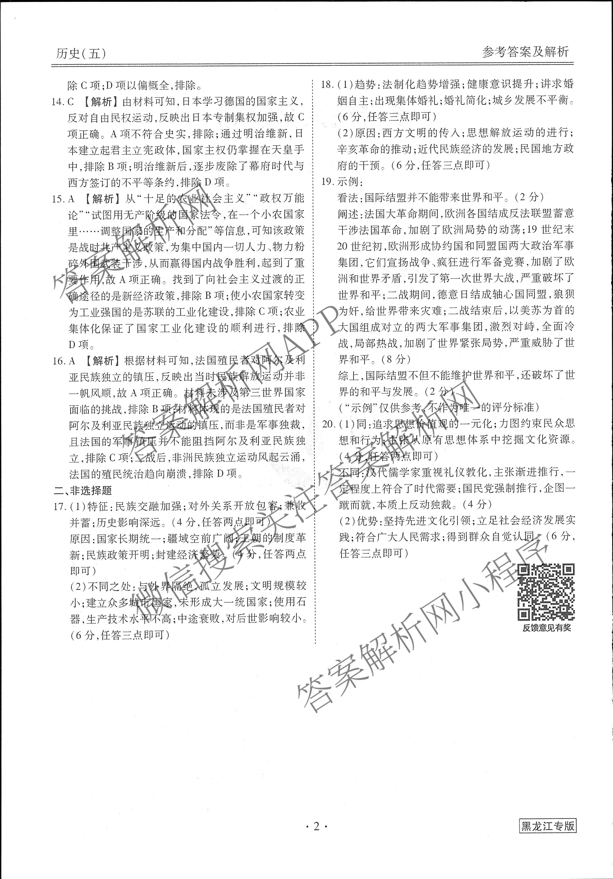 - 高三[衡水金卷先享题]·调研卷 2024年普通高中学业水平选择性考试模拟试题(五)5历史(黑龙江专版)答案