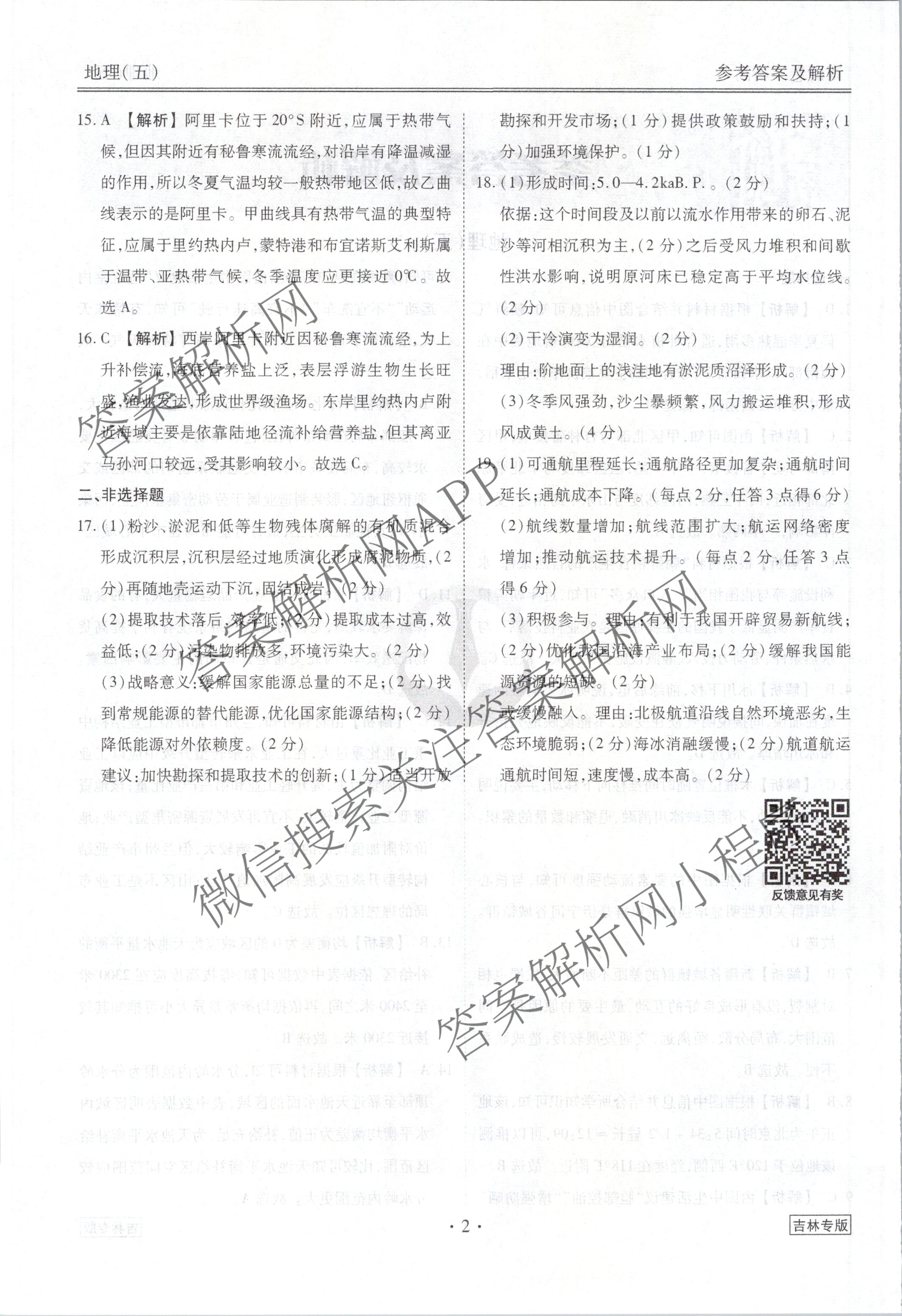 - [衡水金卷先享题]调研卷 2024年普通高中学业水平选择性考试模拟试题(五)5地理(安徽专版)答案