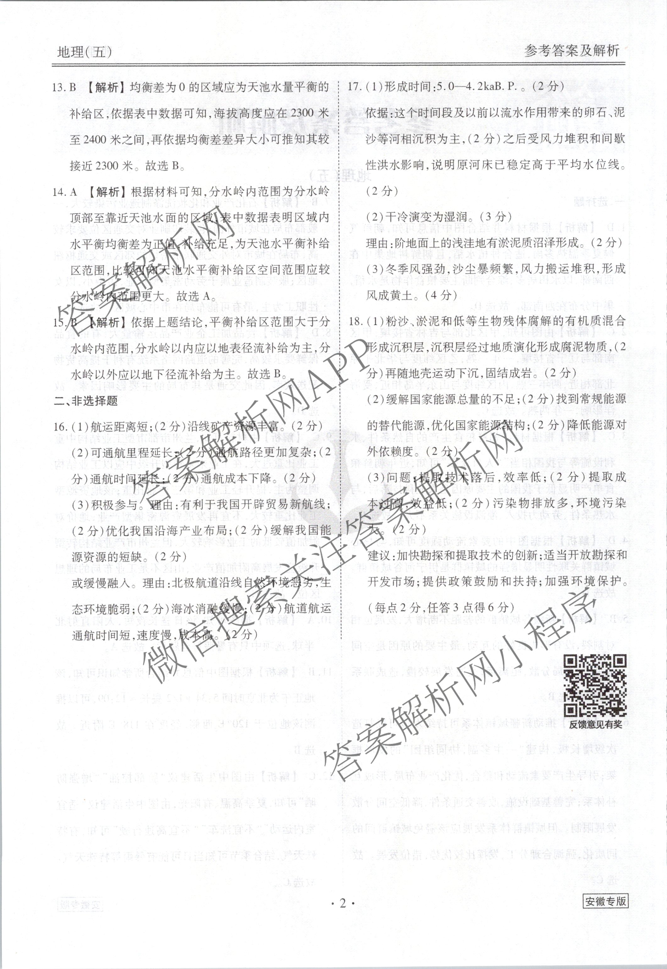 - [衡水金卷先享题]调研卷 2024年普通高中学业水平选择性考试模拟试题(五)5地理(安徽专版)答案