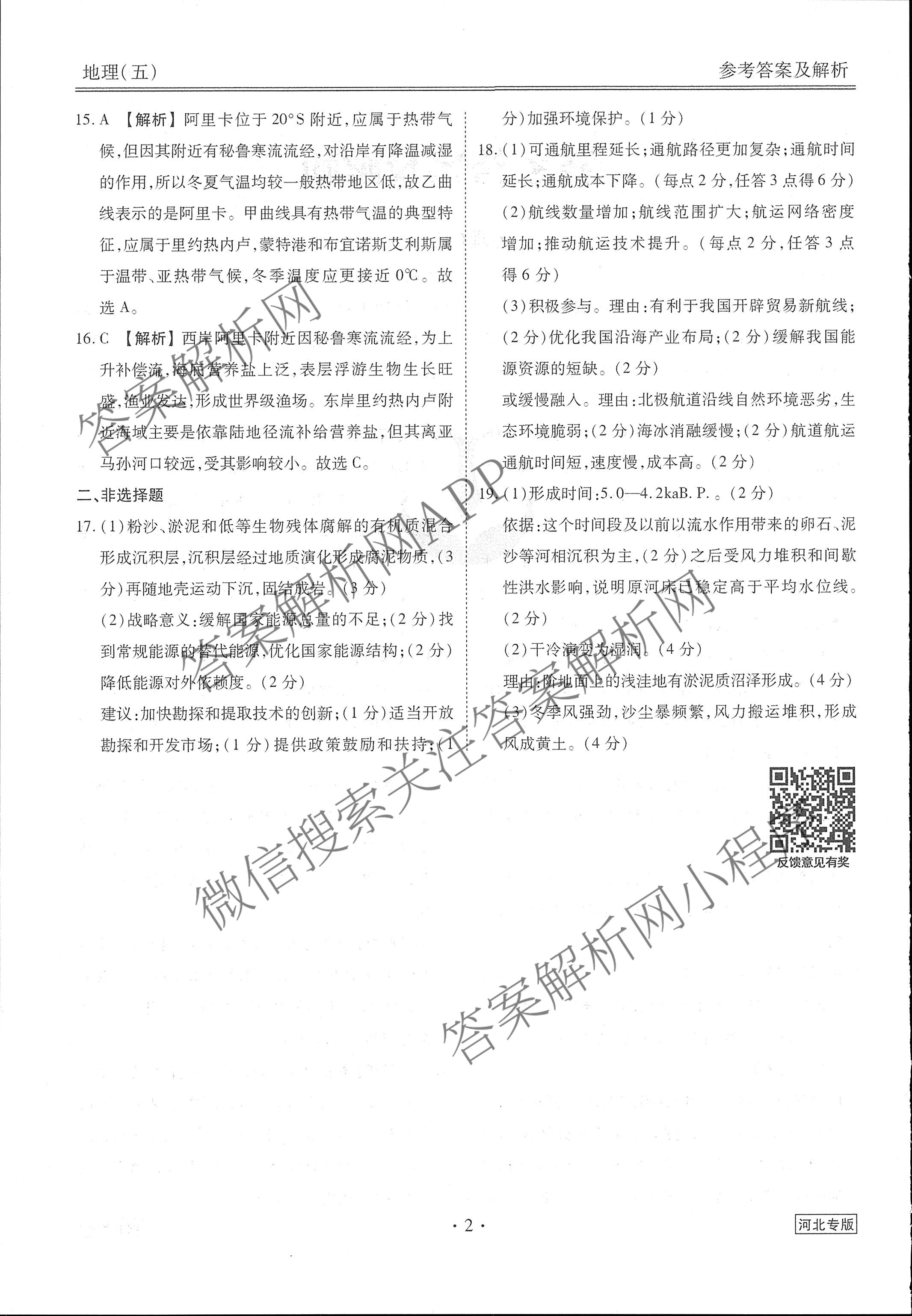 - (衡水金卷先享题)调研卷 2024年普通高中学业水平选择性考试模拟试题(五)5地理(河北专版)答案