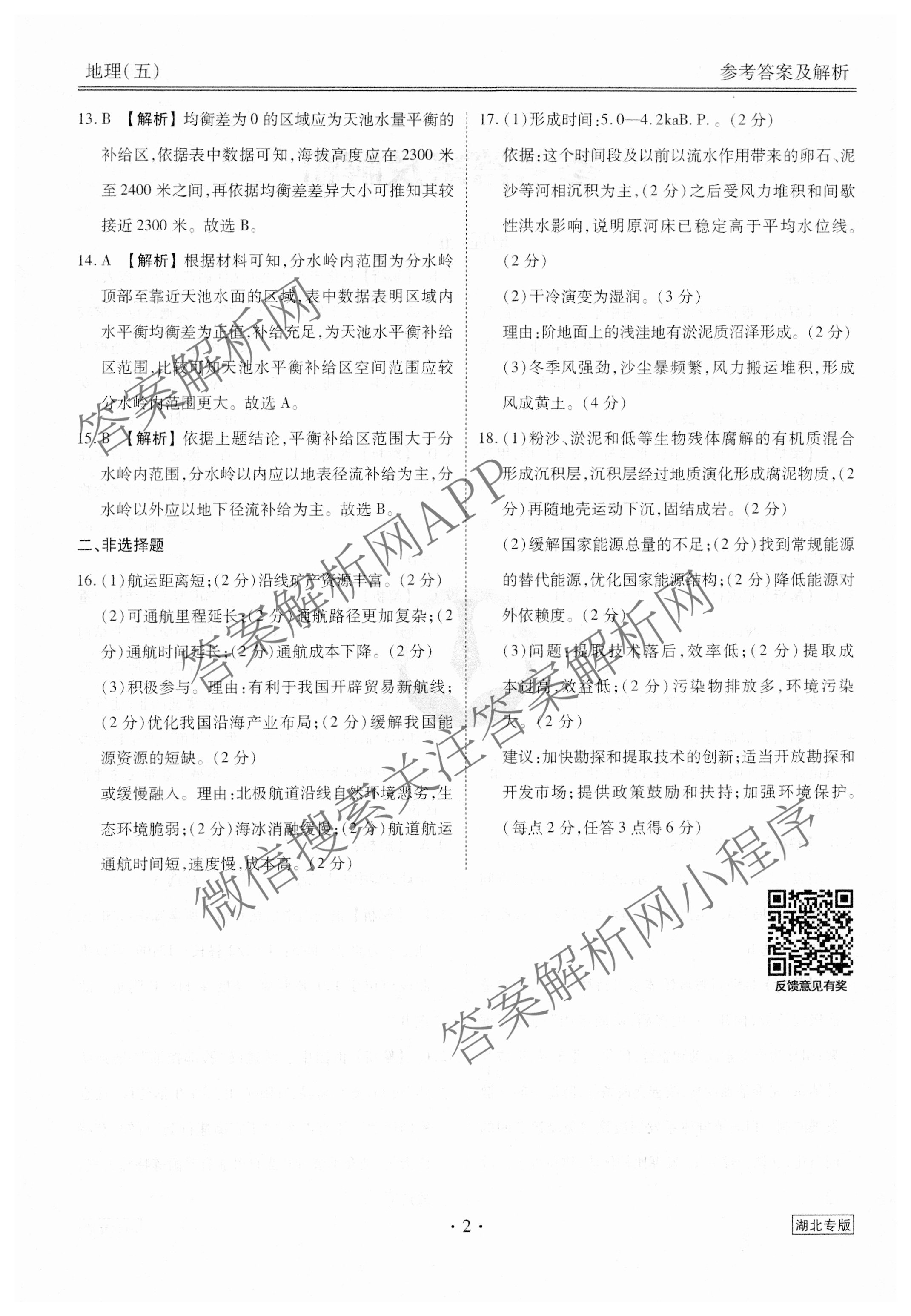 - [衡水金卷先享题]·调研卷 2024年普通高中学业水平选择性考试模拟试题(五)5地理(湖北专版)答案