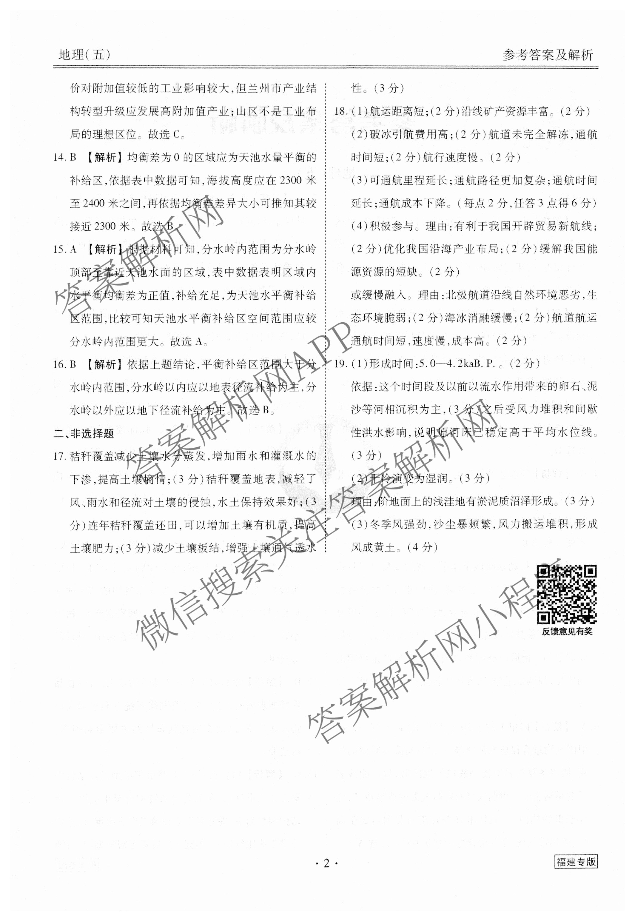 [高三]衡水金卷先享题调研卷 2024年普通高中学业水平选择性考试模拟试题(五)5地理(福建专版)答案