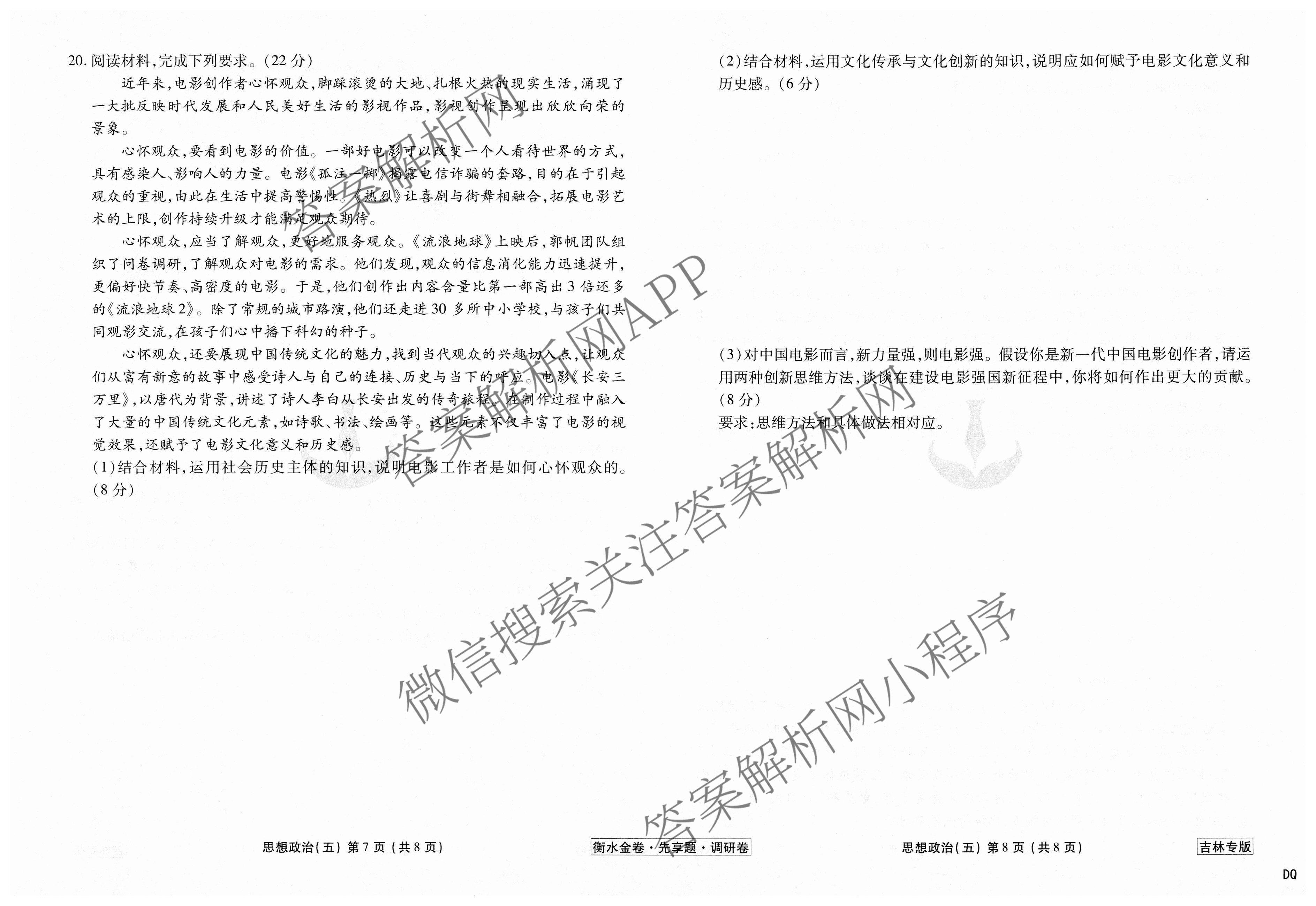 衡水金卷先享题·调研卷 2024年普通高中学业水平选择性考试模拟试题(五)5政治(吉林专版)试题,目前衡水金卷先享题答案网已经汇总了衡水金卷先享题·调研卷 2024年普通高中学业水平选择性考试模拟试题(五)5政治(吉林专版)试题的各科答案和试卷,获取更多衡水金卷先享题答案解析,请在关注本站。