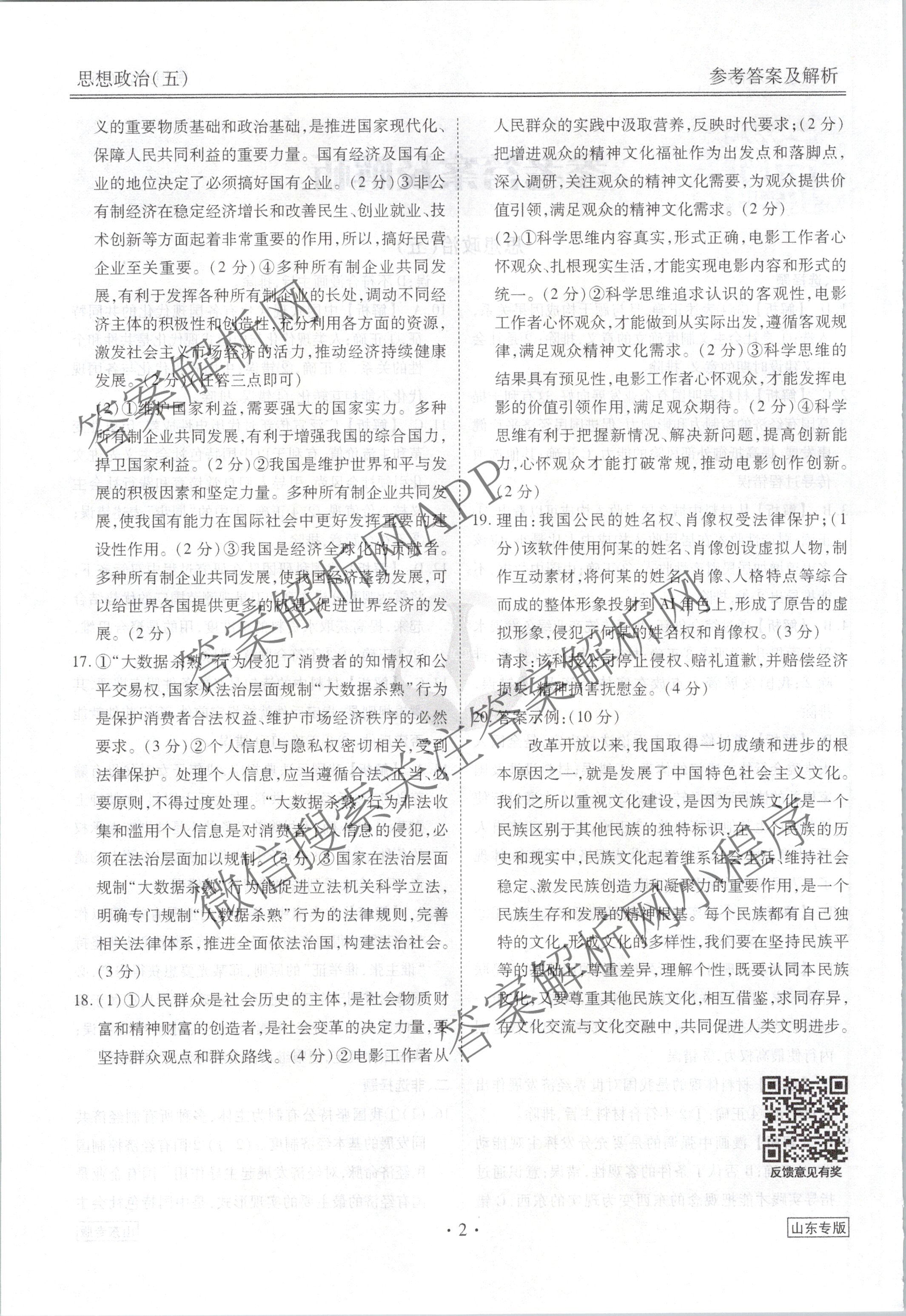 (衡水金卷先享题)调研卷 2024年普通高中学业水平选择性考试模拟试题(五)5政治(山东专版)答案
