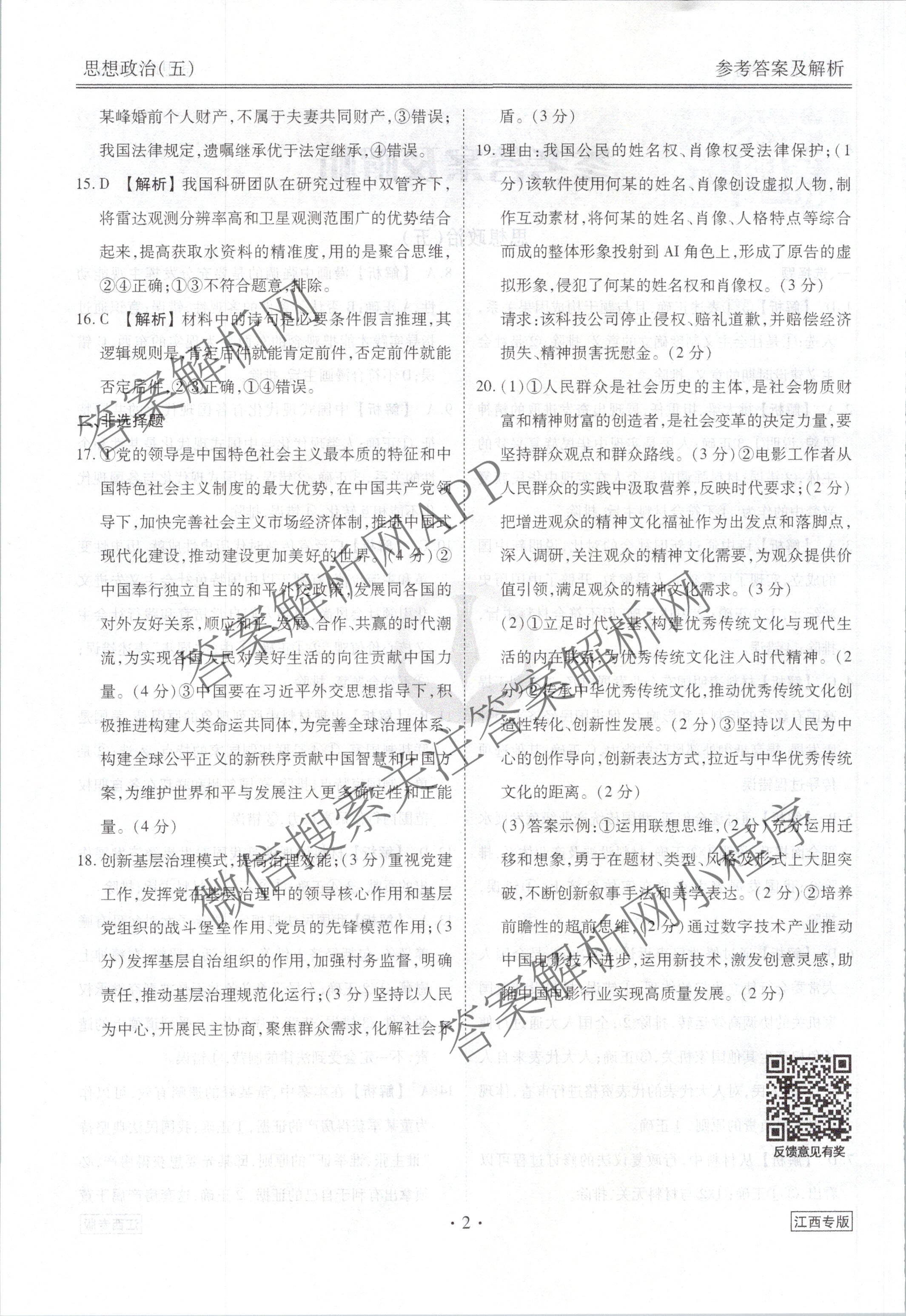 [高三](衡水金卷先享题)·调研卷 2024年普通高中学业水平选择性考试模拟试题(五)5政治(江西专版)答案