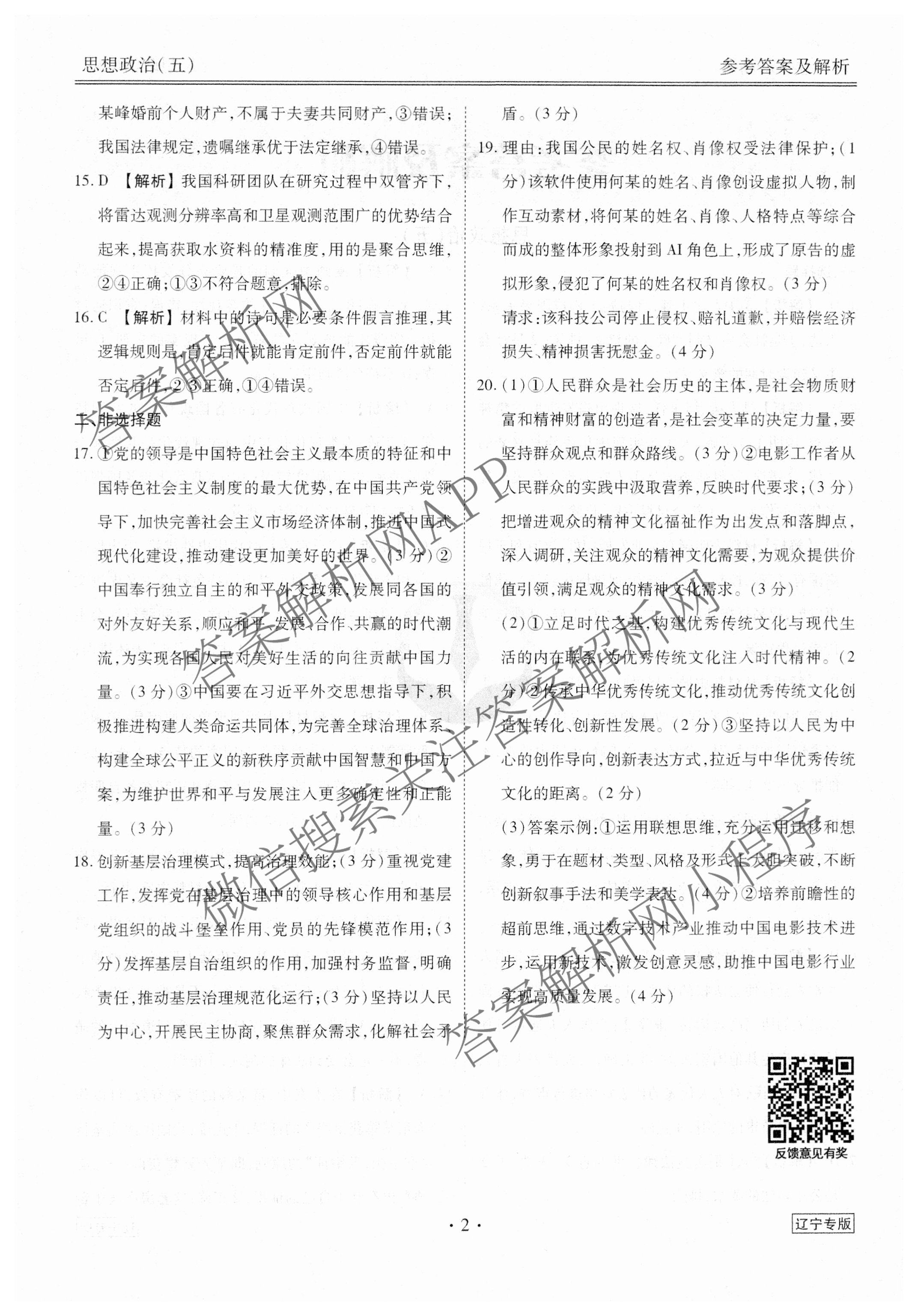 (衡水金卷先享题)·调研卷 2024年普通高中学业水平选择性考试模拟试题(五)5政治(辽宁专版)答案
