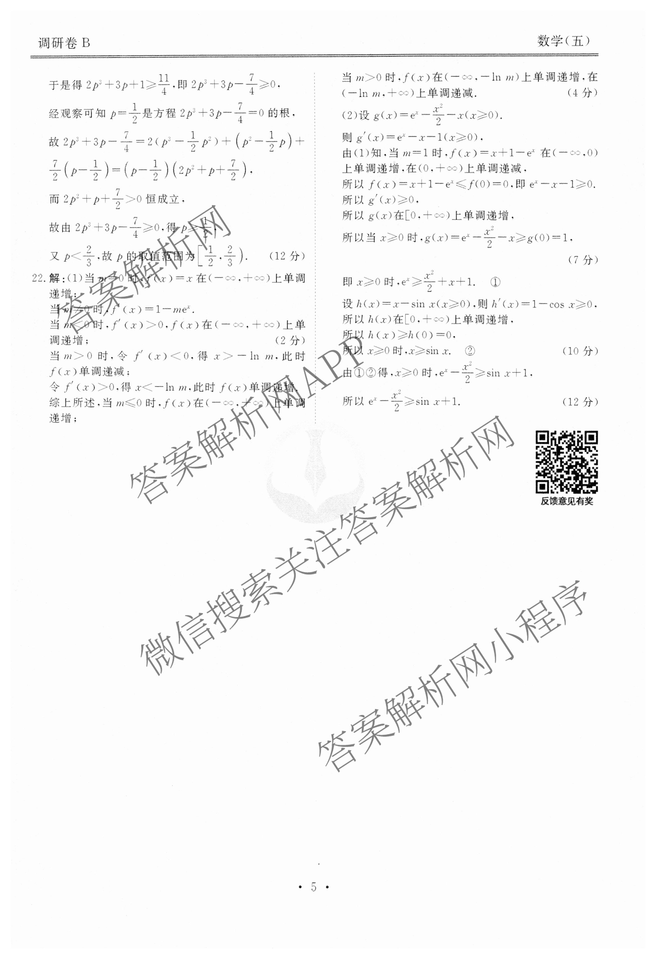 (高三)(衡水金卷先享题)·调研卷 2024年普通高等学校招生全国统一考试模拟试题(五)5数学(新教材B)答案