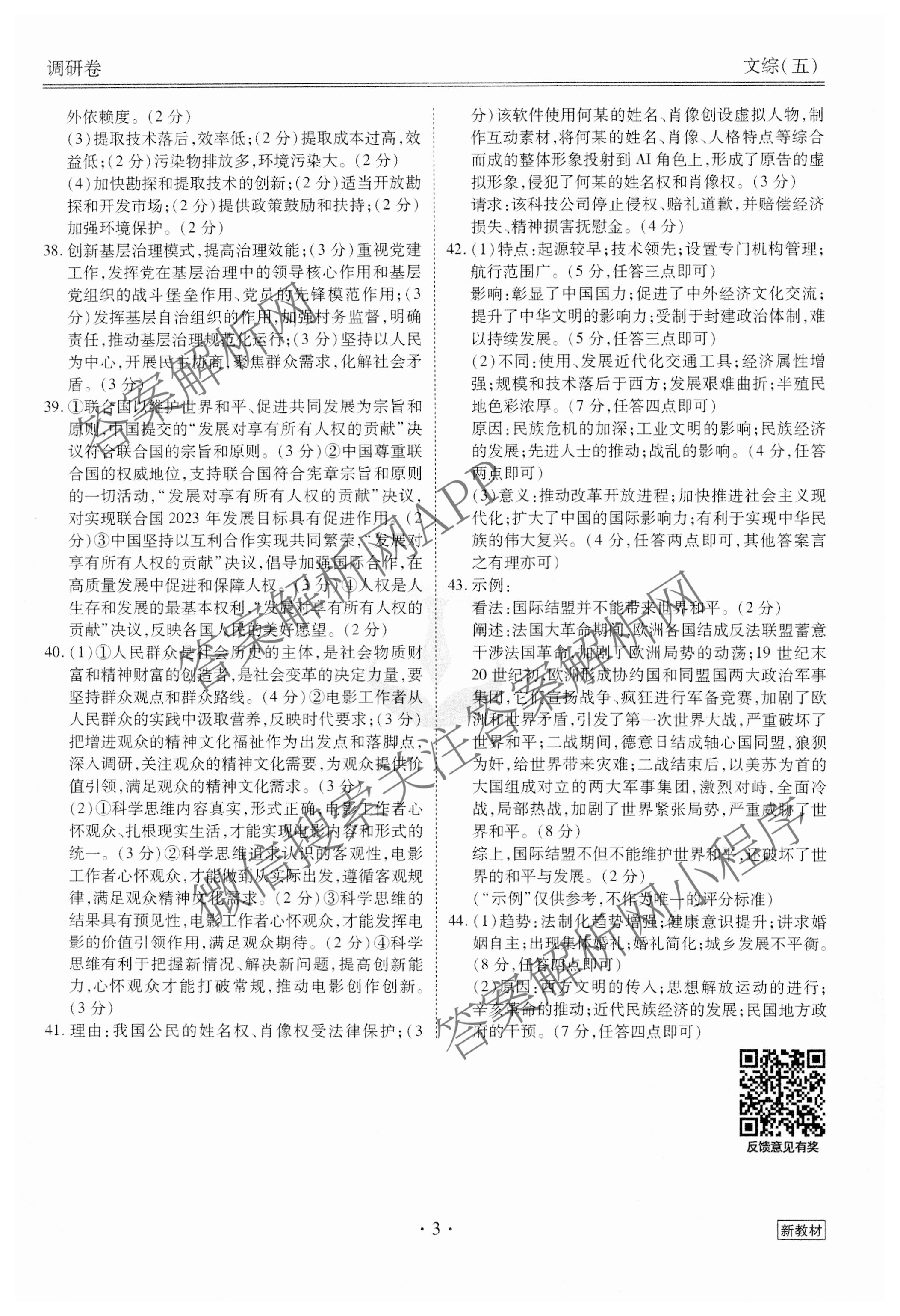 高三衡水金卷先享题调研卷 2024年普通高等学校招生全国统一考试模拟(五)5文综(新教材)答案